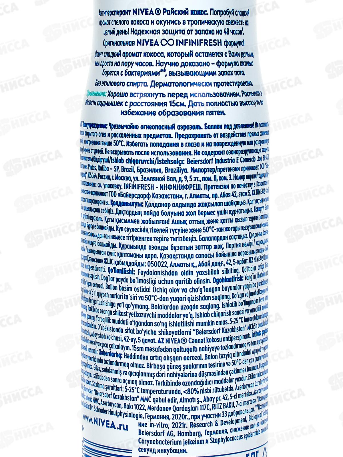 НИВЕЯ дезодорант спрей женский 150мл Райский кокос 85324 *6