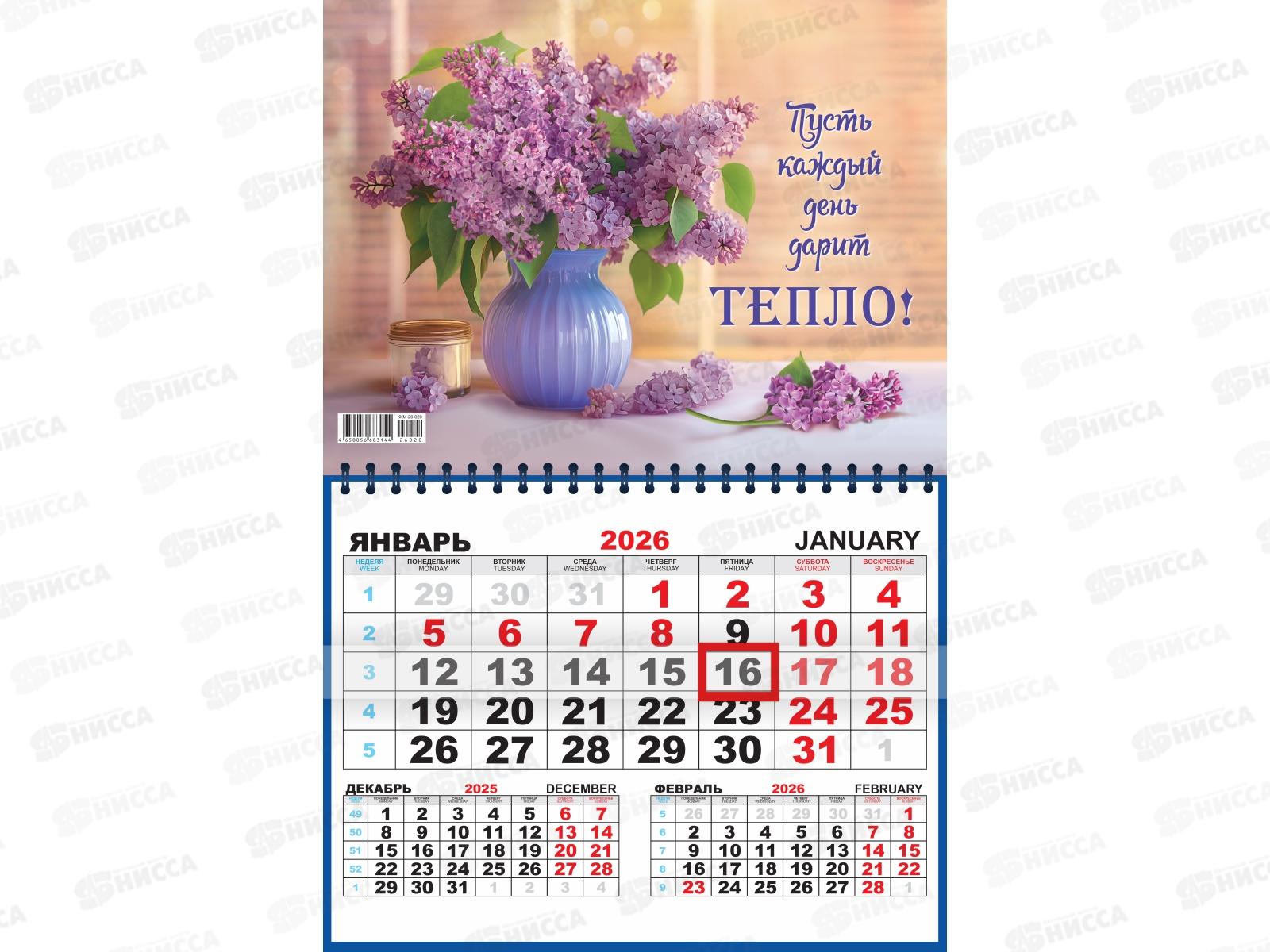 Код:583690; Календарь квартальный 2026 ЛиС 1 бл. Цветы. Нежная сирень, ККМ-26-020 *100