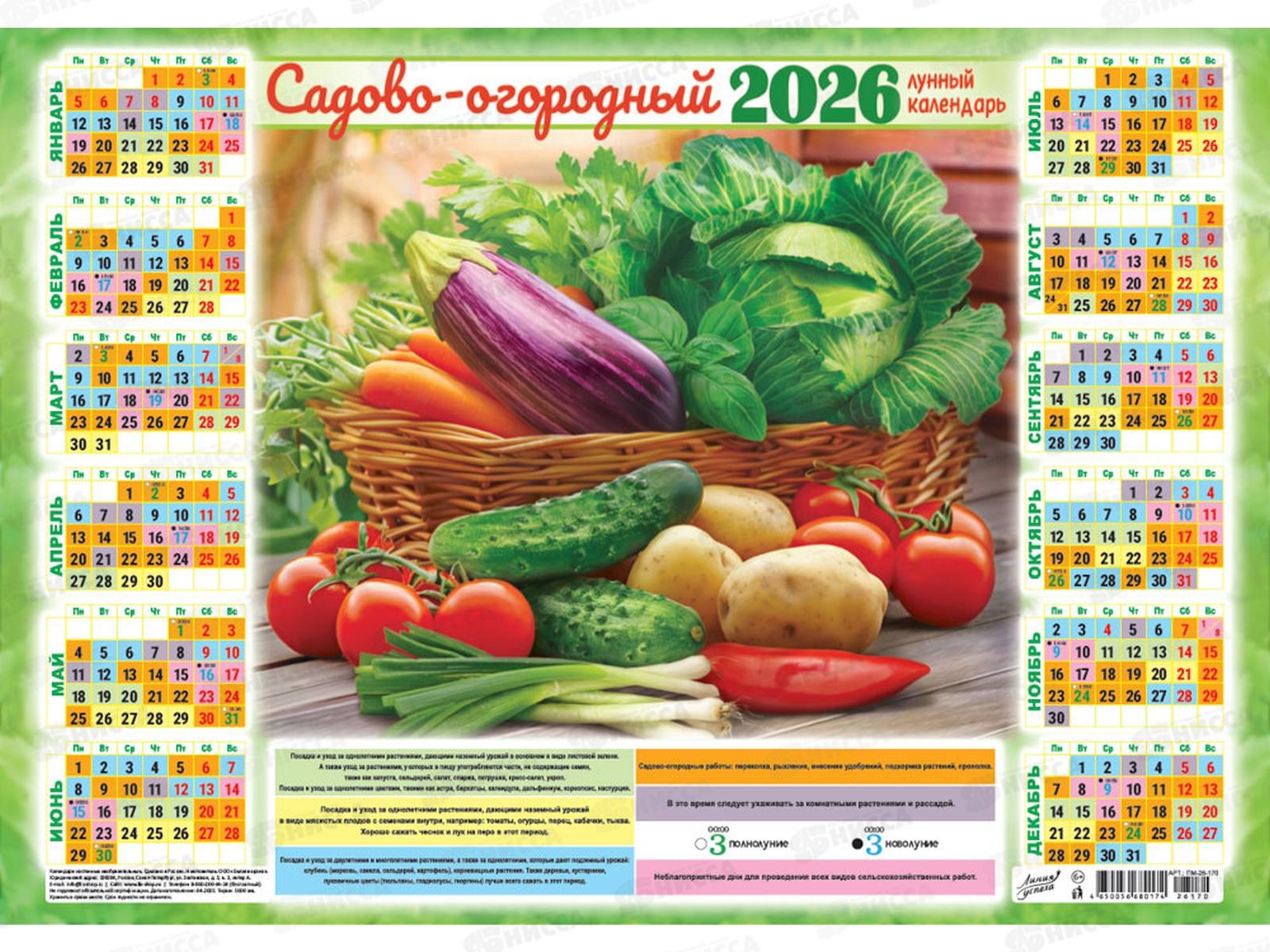 Код:583982; Календарь листовой 2026 А3 ЛиС Садово-огородный лунный, ПМ-26-173 *100