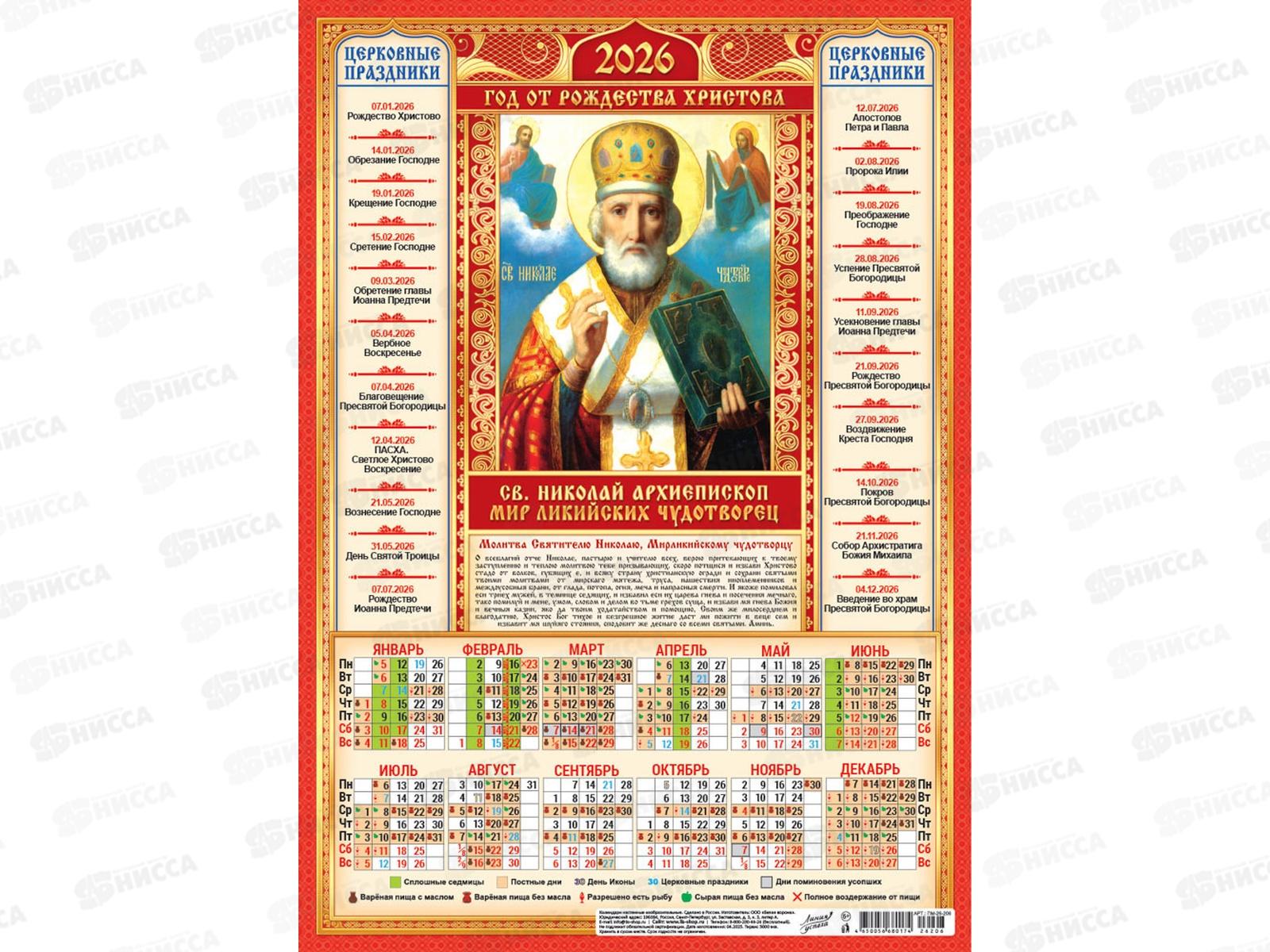 Код:583990; Календарь листовой 2026 А3 ЛиС Иконы. Николай Чудотворец, ПМ-26-206 *100