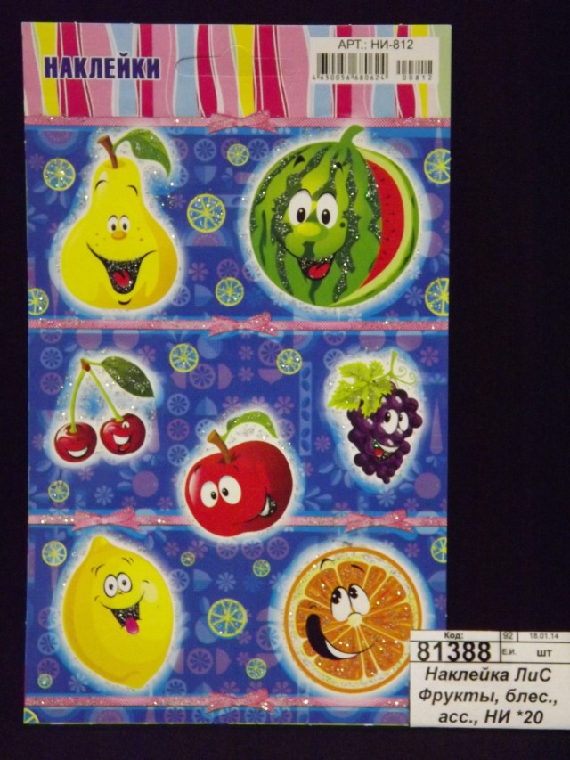Код:081388; Наклейка ЛиС Фрукты, блестящие, в ассортименте, НИ *20