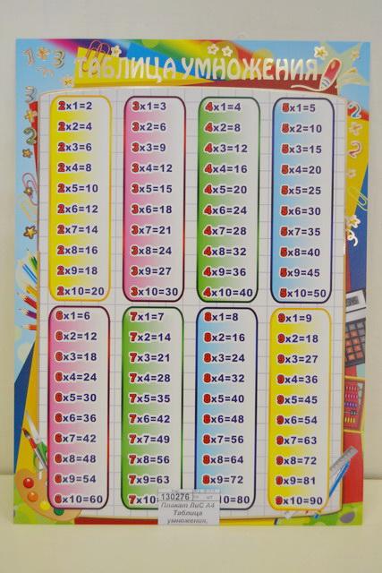 Код:130276; Плакат ЛиС А4 Таблица умножения, фольга, ОФГ-205 *20