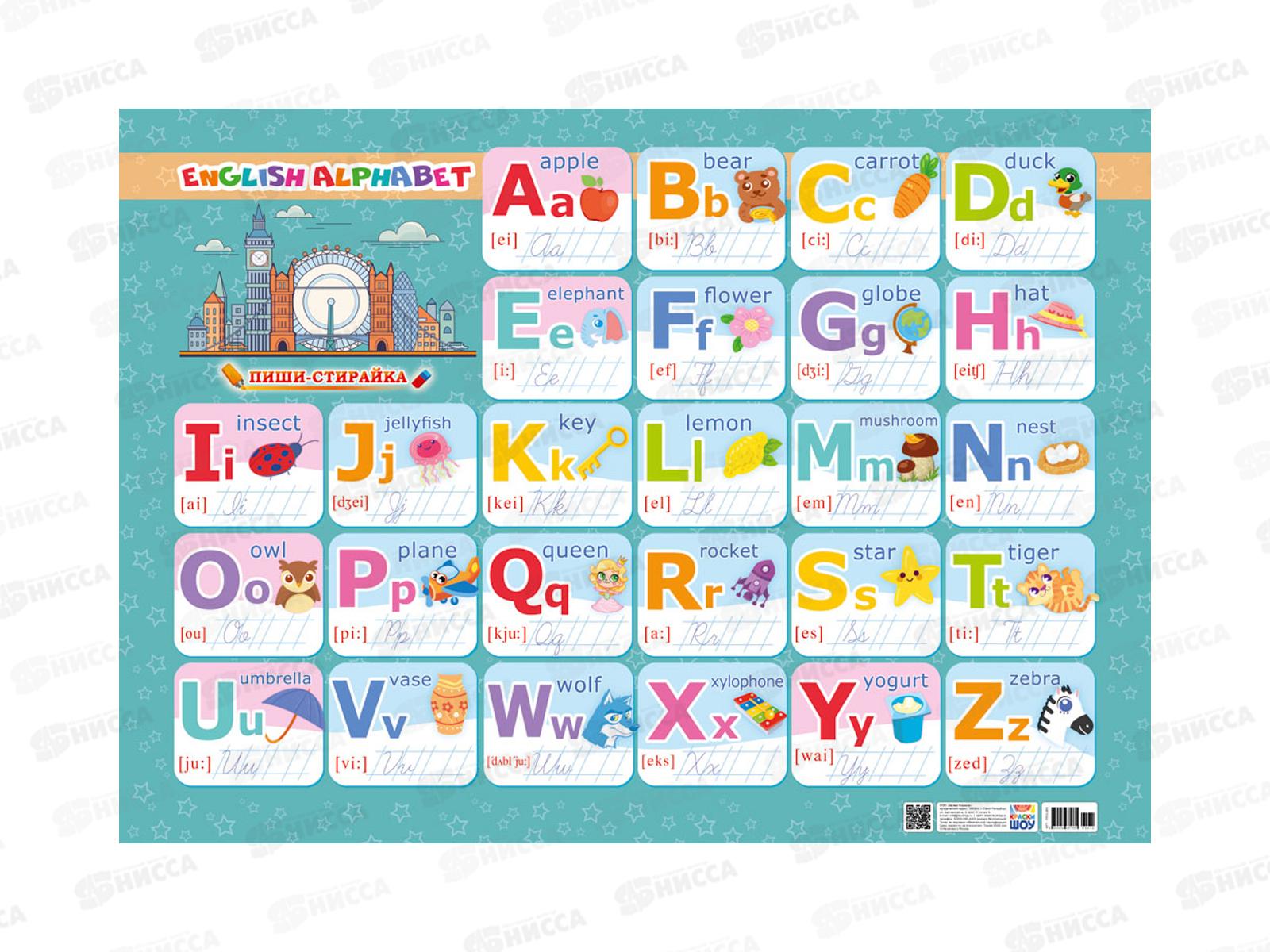 Код:595541; Плакат ЛиС А2 Английский алфавит, (пиши-стирай), ППС-054