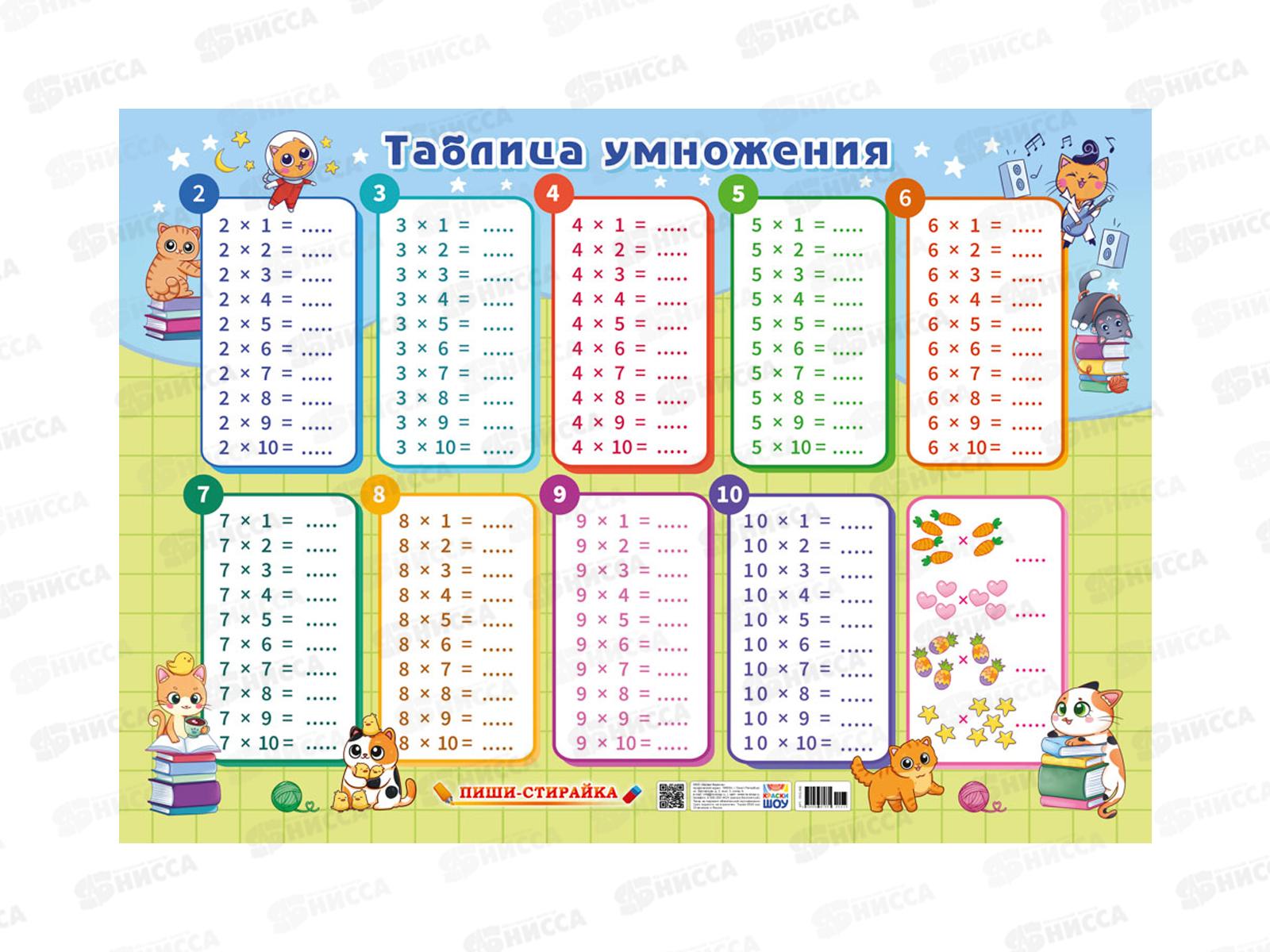 Код:595542; Плакат ЛиС А2 Таблица умножения, (пиши-стирай), ППС-063