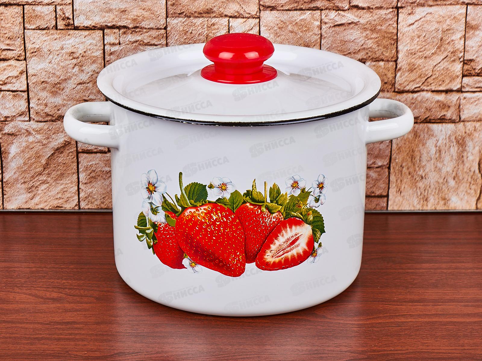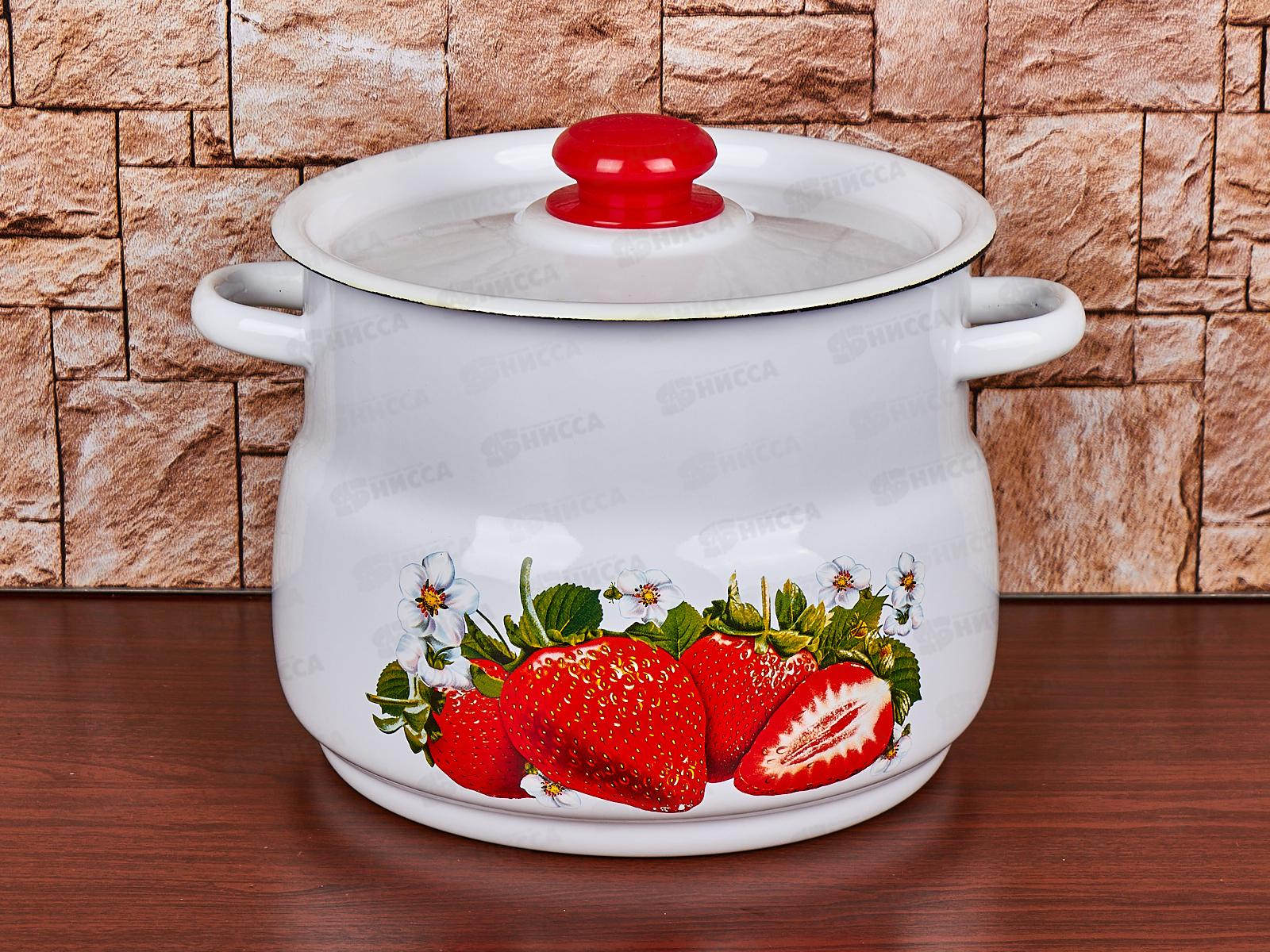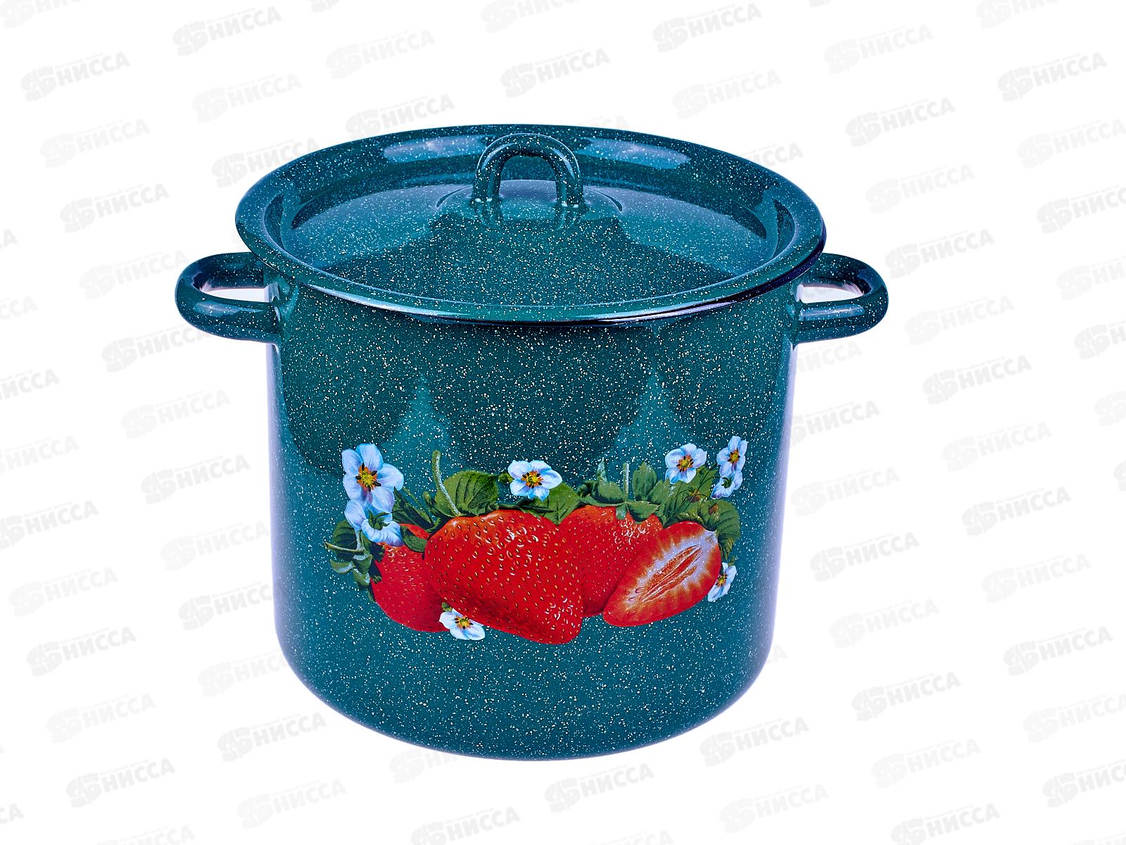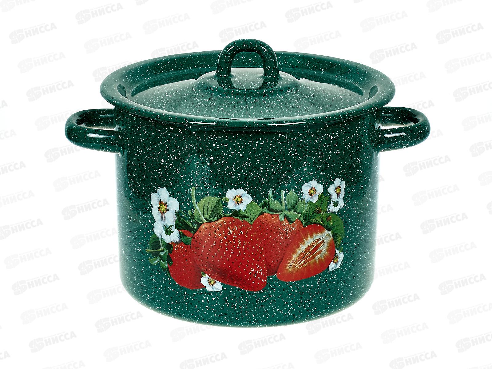 Код:501873; Кастрюля 3,5л цилиндрическая Клубника садовая, зеленый рябчик с петлей С1612.з*59