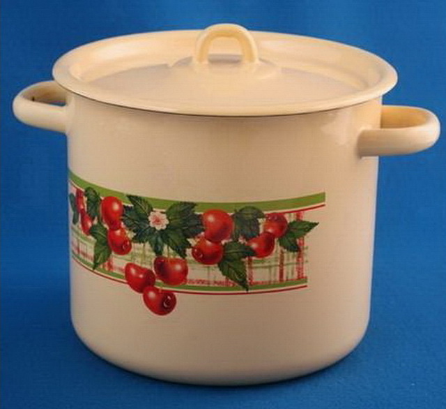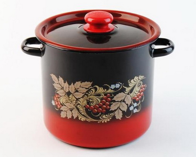 Кастрюля цилиндрическая, декорированная с пластмассовой кнопки из эмалированной стали понадобится на каждой кухне: дома и на даче, любителю кулинарии ...