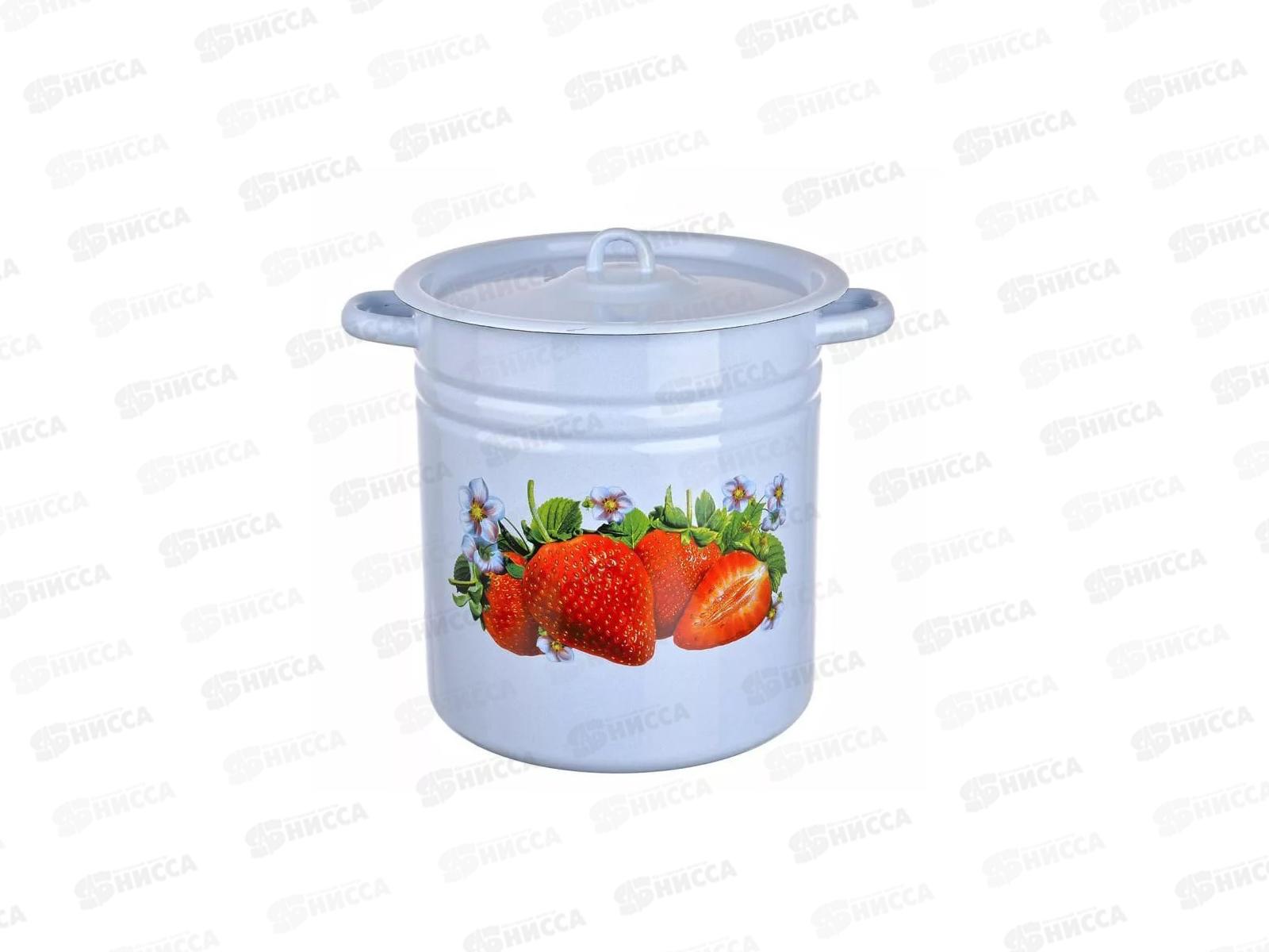Код:460242; Кастрюля 5,5л цилиндрическая Клубника садовая, зелёный рябчик с петлей С1617.з*59
