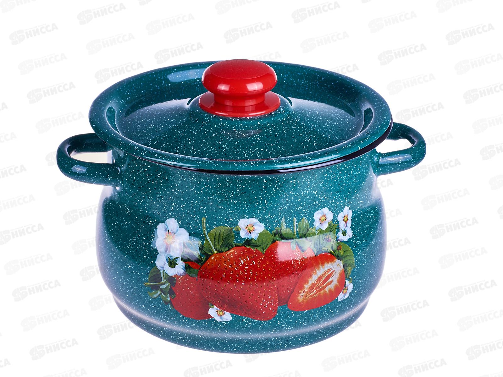 Код:479536; Кастрюля 4,0л сферическая Клубника садовая зеленый рябчик С1912.3з*59