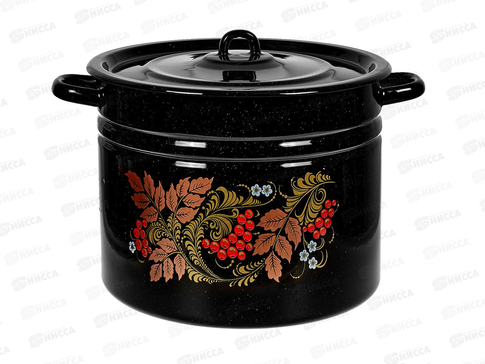 Код:493842; Кастрюля 14,0л цилиндрическая Рябинушка, черный рябчик с петл. С1626.Р*05