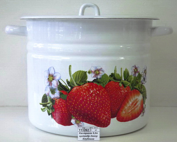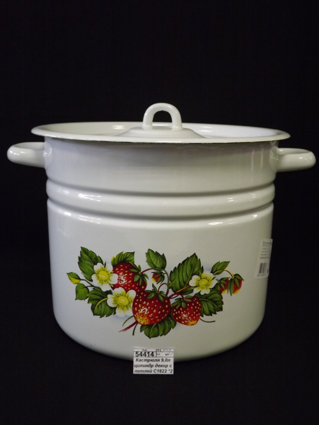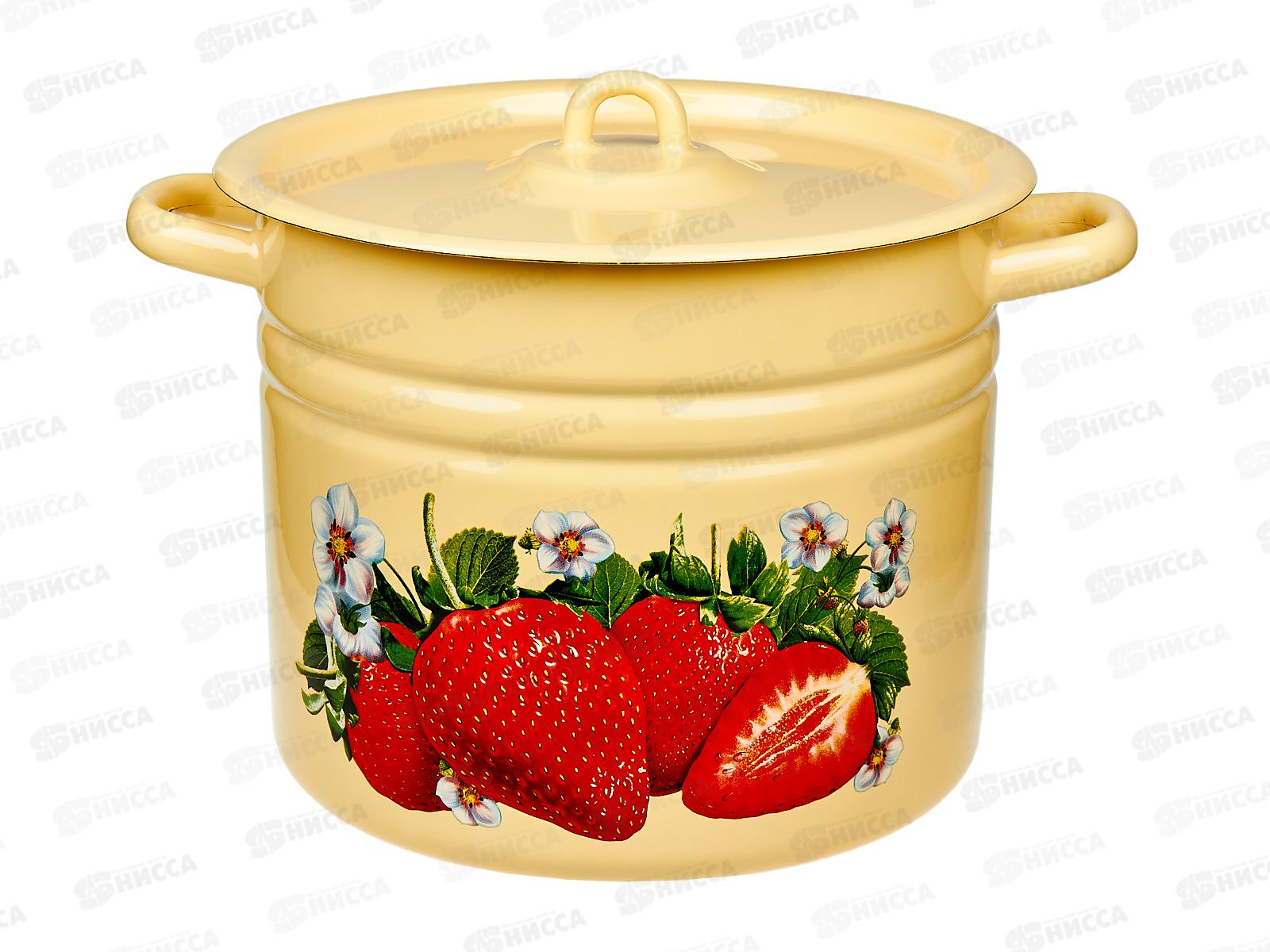Код:113262; Кастрюля 9,0л цилиндрическая декорированная Клубника садовая с петлей С1622*59 *2