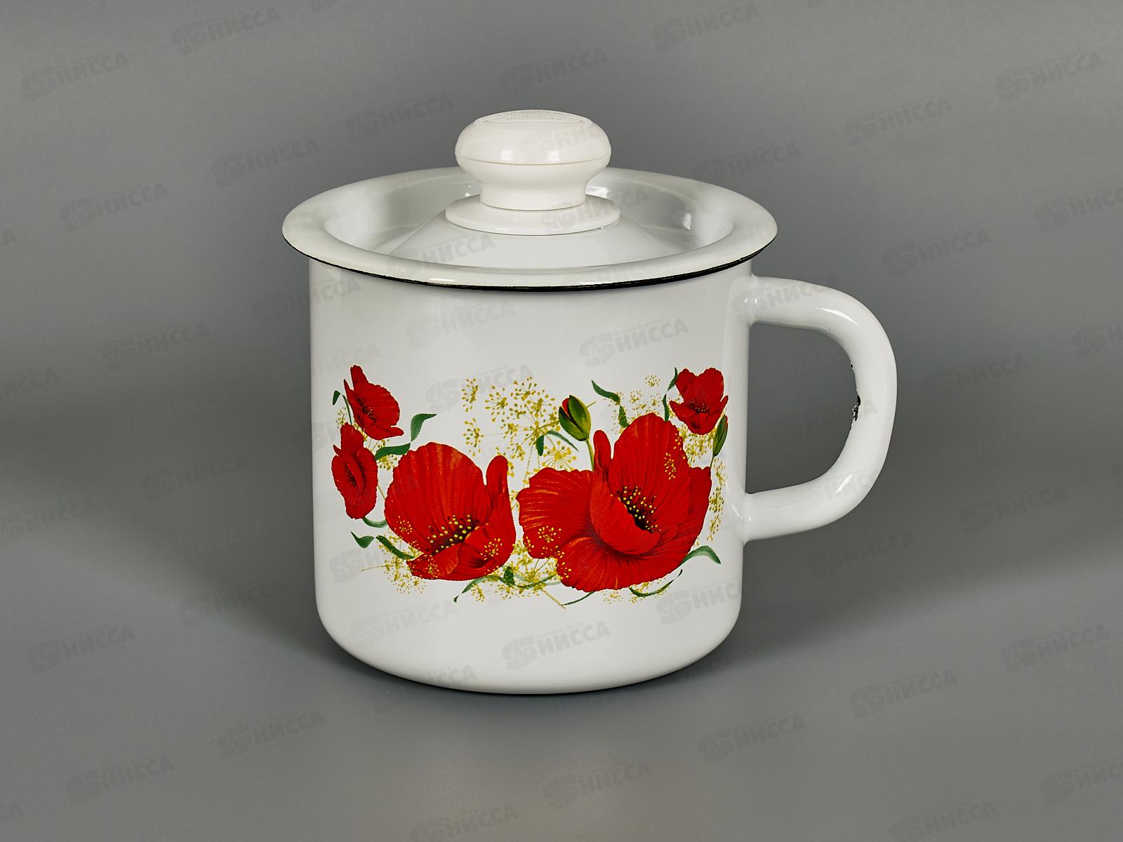 Код:165304; Кастрюля 8,0л цилиндрическая декорированная Маки с петлёй С1620*67 *2