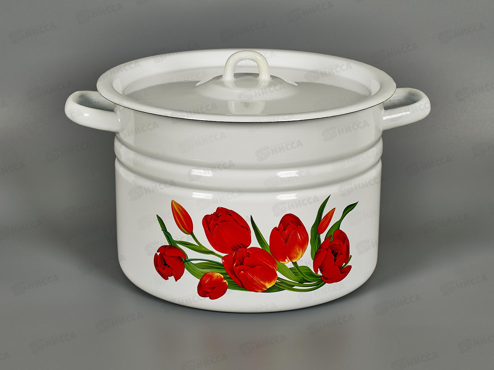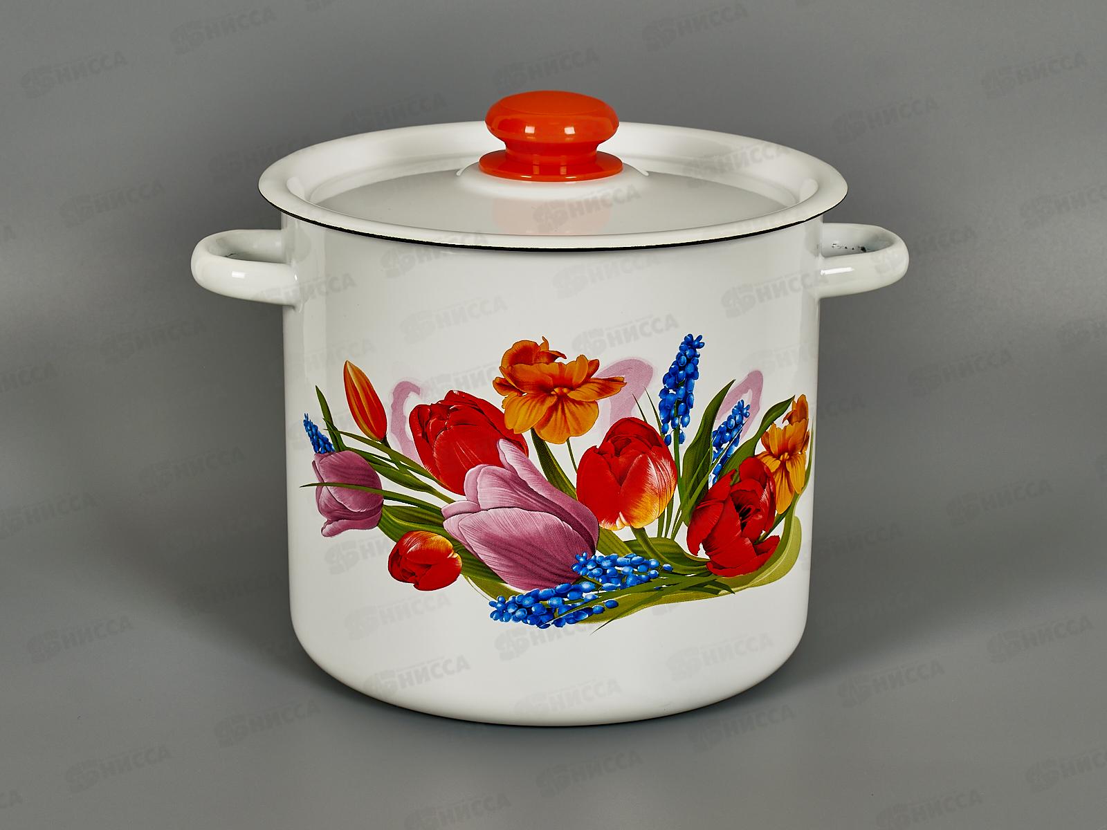 Код:169353; Кастрюля 9,0л цилиндрическая декорированная с петлей Тюльпаны С1622*78 *2