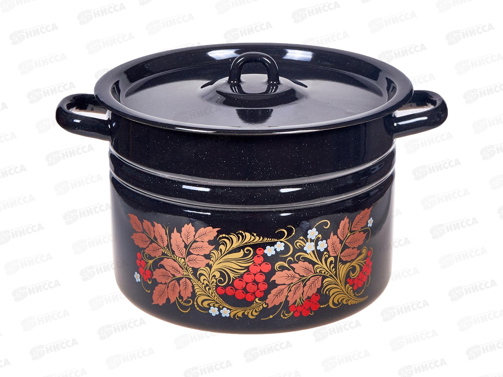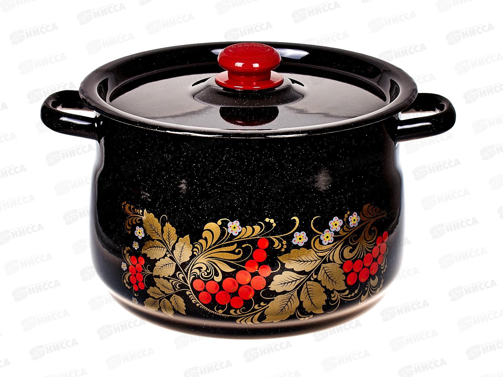 Код:482548; Кастрюля 8,0л цилиндрическая Рябинушка, черный рябчик с петлей С1620.Р*05