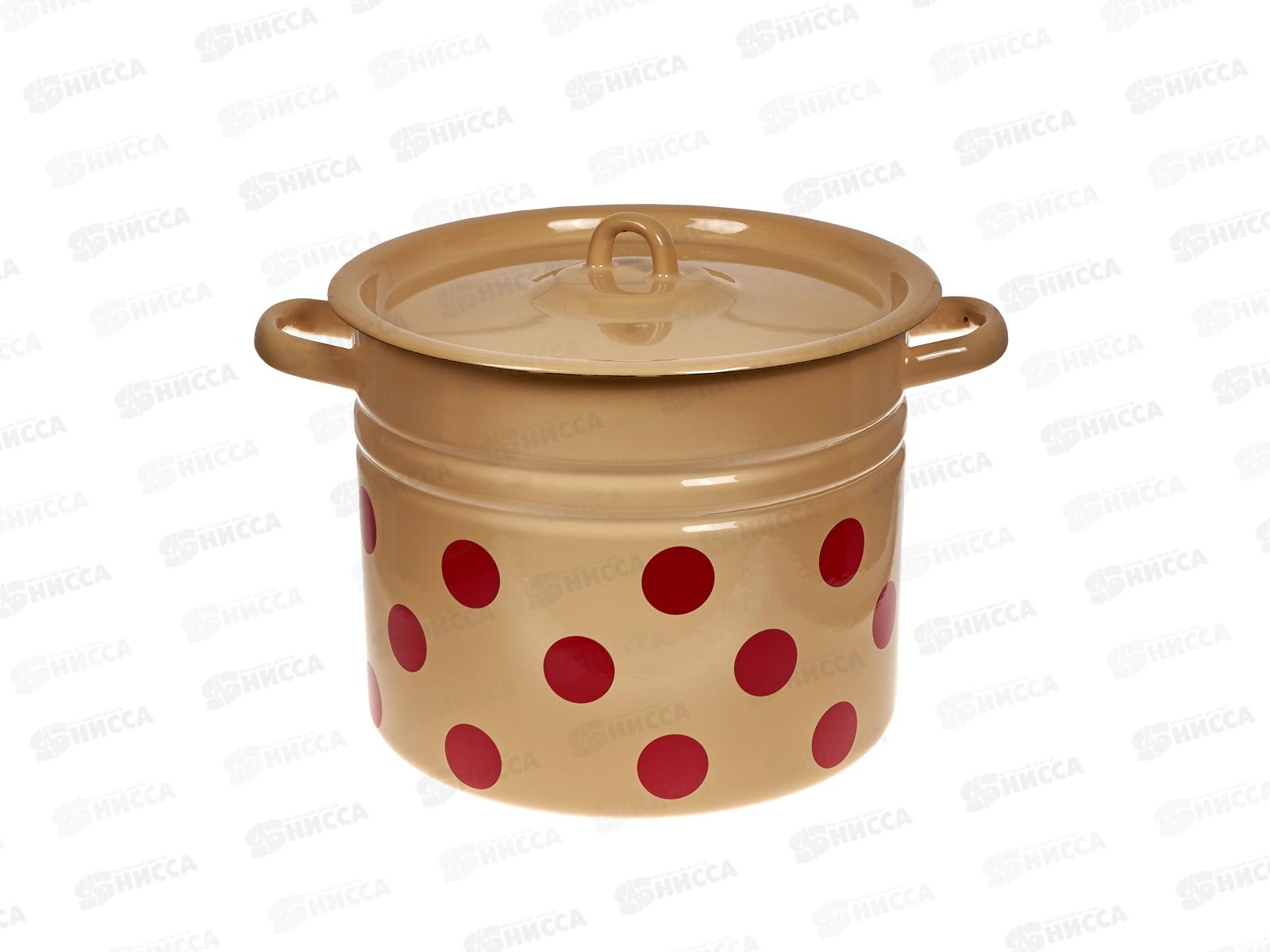 Код:497838; Кастрюля 9,0л цилиндрическая Красный горох палевая с петлей С1622.П*79