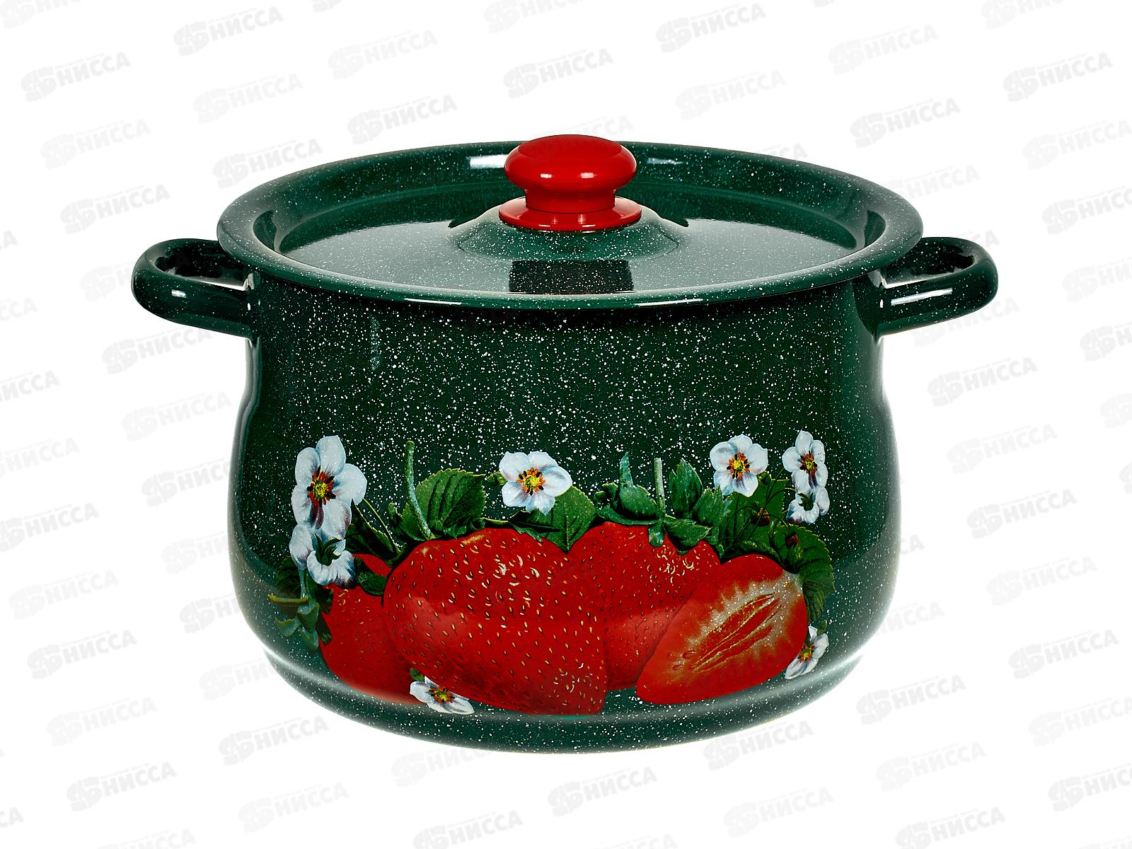 Код:529928; Кастрюля 8,0л сферическая Клубника садовая зеленый рябчик С1920.3з*59