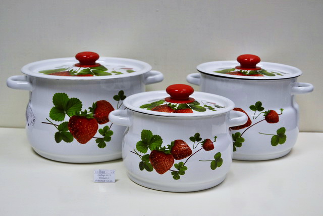 Характеристики:Торговая марка: СтальЭмальАртикул: N17B02Тип товара: Набор кастрюльПокрытие: эмалированныеМодель: № 17Количество: 3 штДекор: "Ягодн...