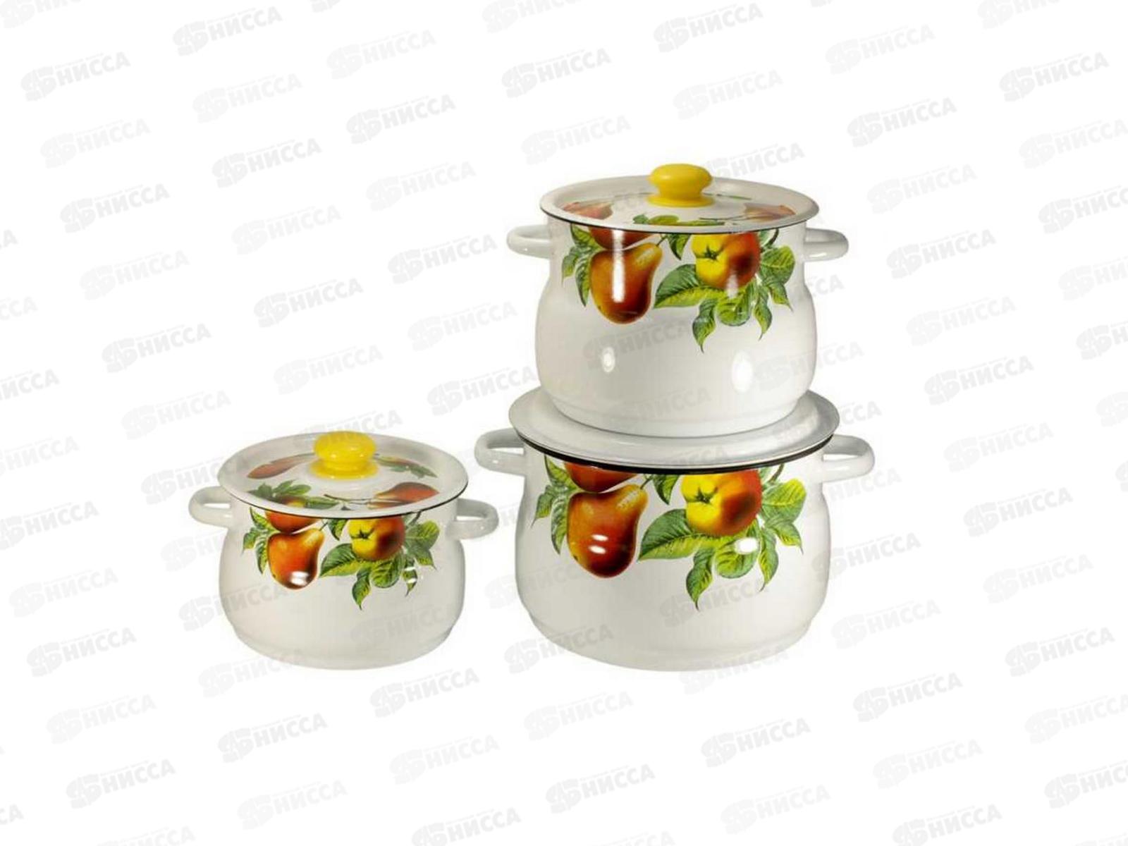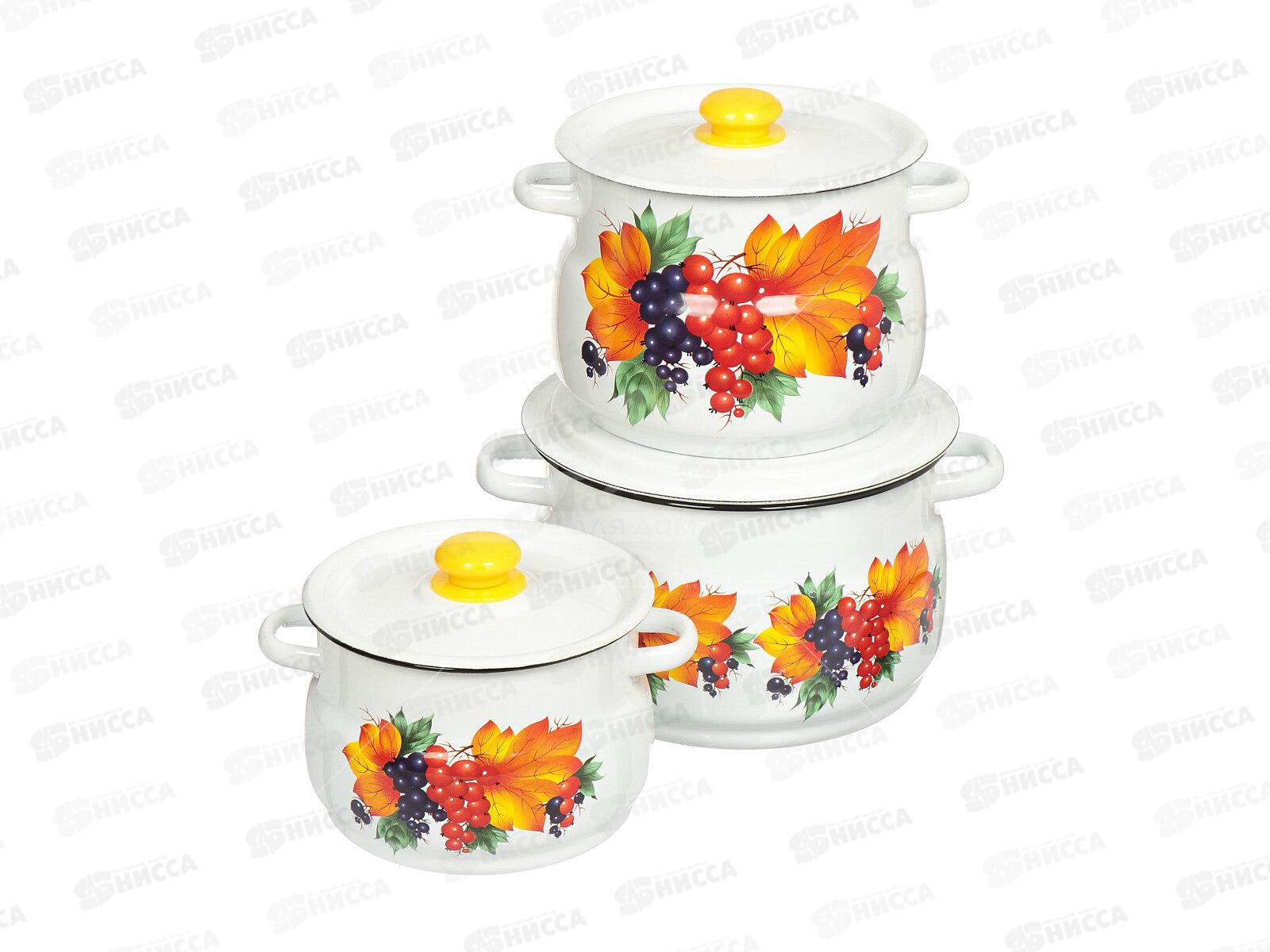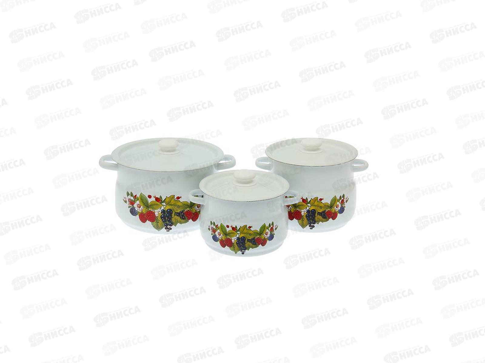 Код:068968; Набор №11 Летняя ягода N11B56 3 предмета (4,0л и 5,5л и 8,0л) белый с декором