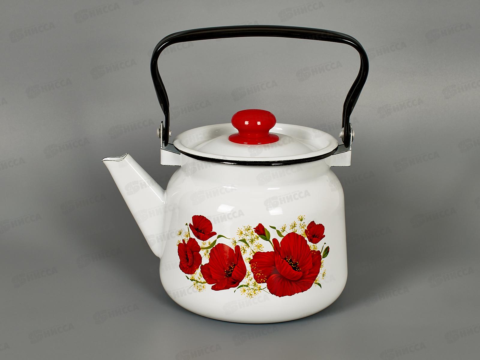 Код:343282; Чайник 2,3л Маки белый с пластм.кнопкой С2714.3 *67