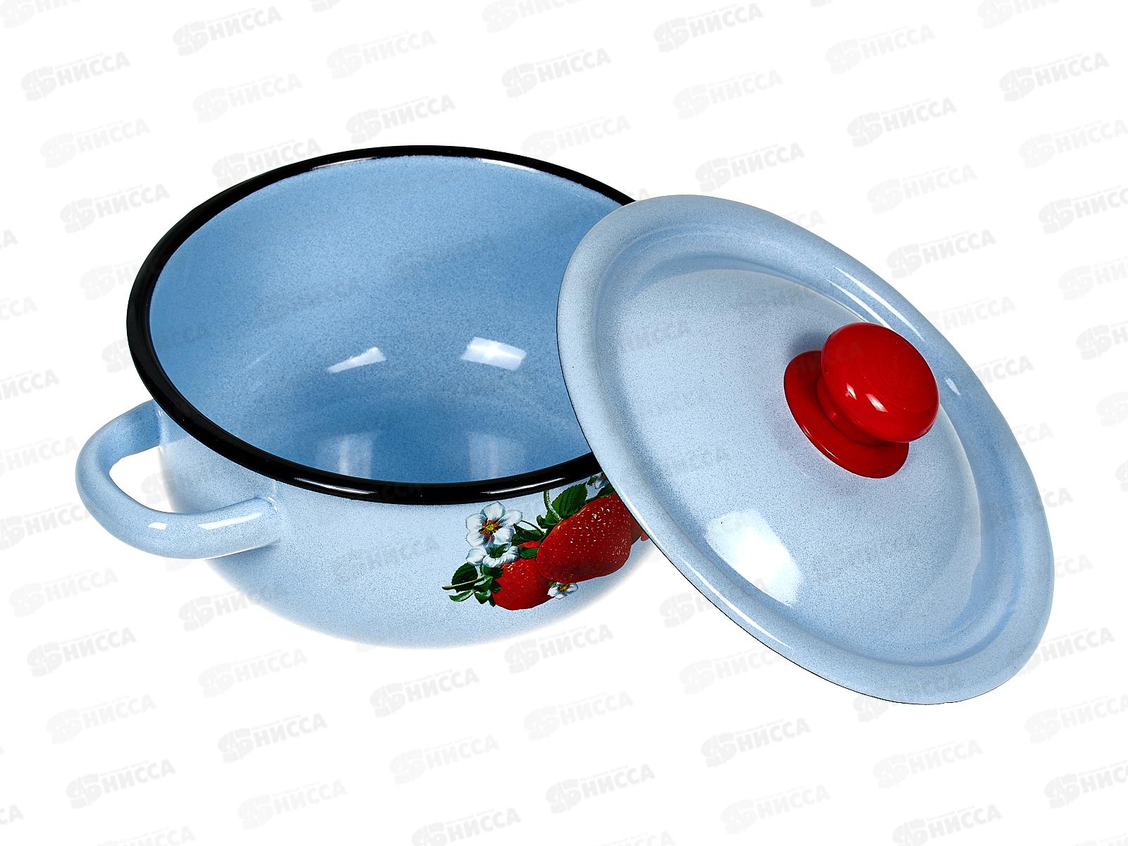 Кастрюля 1,5л цилиндрическая декорированная серо-голубая с пластиковой кнопкой С1607.3СГ