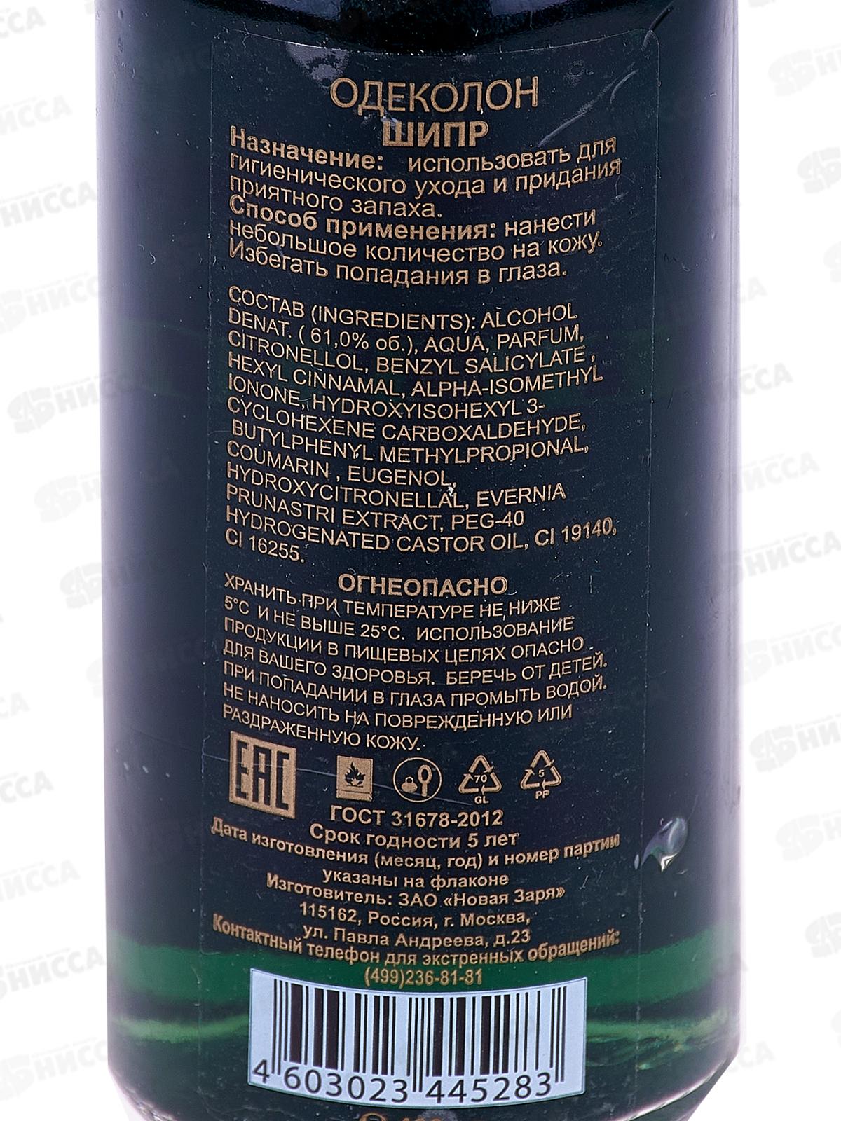 Аромат, достойный аплодисментов! Название легендарного одеколона «Шипр» произошло от всем известного «Кипр» – прекрасного острова в Средиземном море. Главный базовый аккорд аромата – древесный мох, растущий на стволах кипрского дуба. Когда в игру вступают ноты сердца, сознание погружается в мир волшебной гармонии природы. Притягательные флюиды тропической пачули и сладкой ванили с нюансами легкой горечи рождают страстные мотивы, а нотки сандала добавляют необходимый баланс. Благодаря его умиротворяющим свойствам открытая страсть превращается в загадку. В чем же суть знаменитого аромата? В звучании того самого древесного мха из далекого Кипра. В его запахе можно услышать все оттенки живого леса. В нотах влажной земли, промокших деревьев и растений утопают загадочные сердечные аккорды, зовя за собой в таинственную глубину. Тонкое, невероятно мягкое и нежное звучание природного лабданума при этом подарит ощущение неги и внутреннего расслабления. За всю свою длинную историю одеколон «Шипр» никого еще не оставил равнодушным. Подходит для всех типов кожи. Используется как гигиеническое освежающее средство.