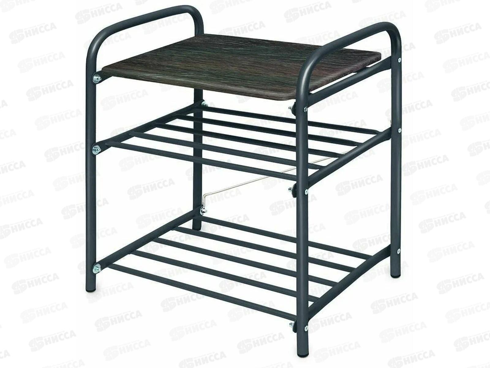 Напольная подставка для обуви с 2-мя надежными полками для размещения обуви с усиленным металлическим каркасом.Покрытие каркаса банкетки устойчиво к механическим воздействиям. Материал: каркас - стальная труба с порошковым антикоррозийным покрытием, сиденье - МДФ, колпачки на ножках - пластик. Допустимая нагрузка не более 100кг. Конструкция банкетки разборная.
