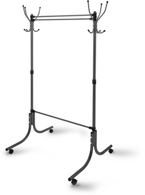 Вешалка (6 крючков по бокам) для размещения верхней одежды и головных уборов. Материал: каркас - стальная труба с порошковым покрытием, колеса и након...