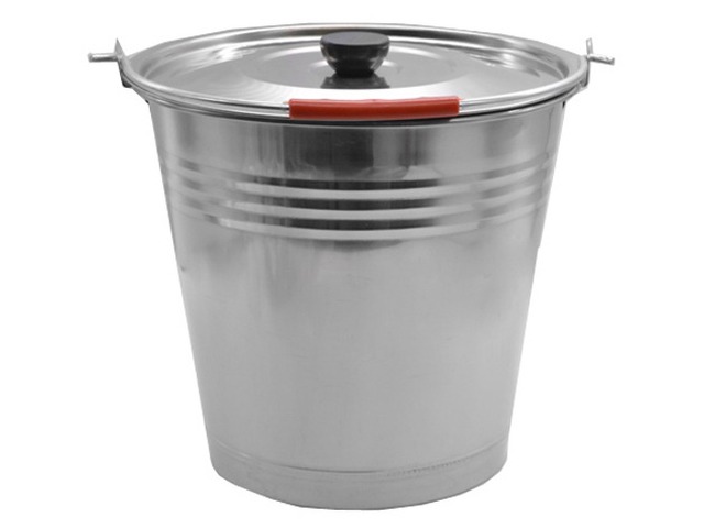 Код:411279; Ведро 12,0л с крышкой, нержавеющее, с меркой 0099