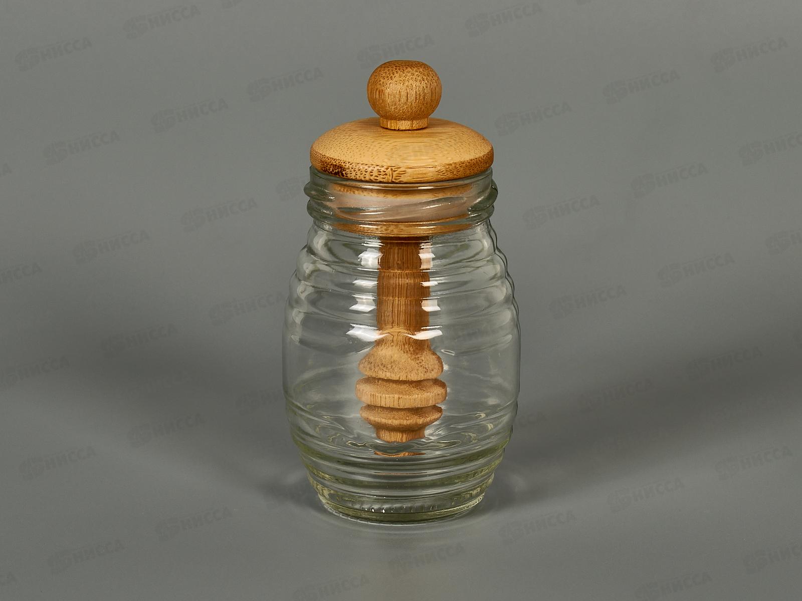 Код:586590; Банка для меда с ложкой стекло бамбук 6,4*12,2см №1 КТ-БМ-01