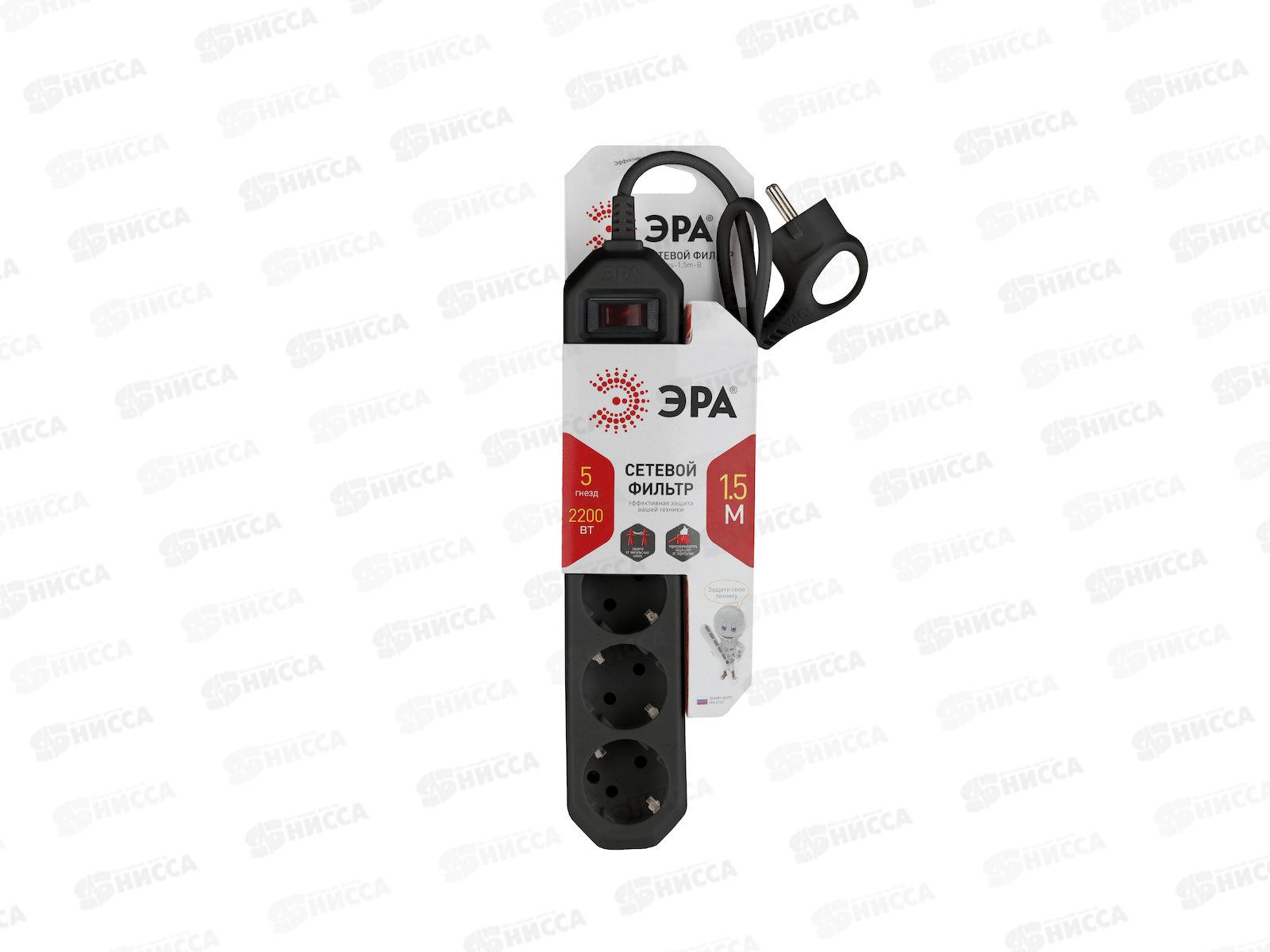 Код:153591; Сетевой фильтр ЭРА USF-5es-1.5m-B с заземлением, с выключателем, 5 розеток, 1.5м *20