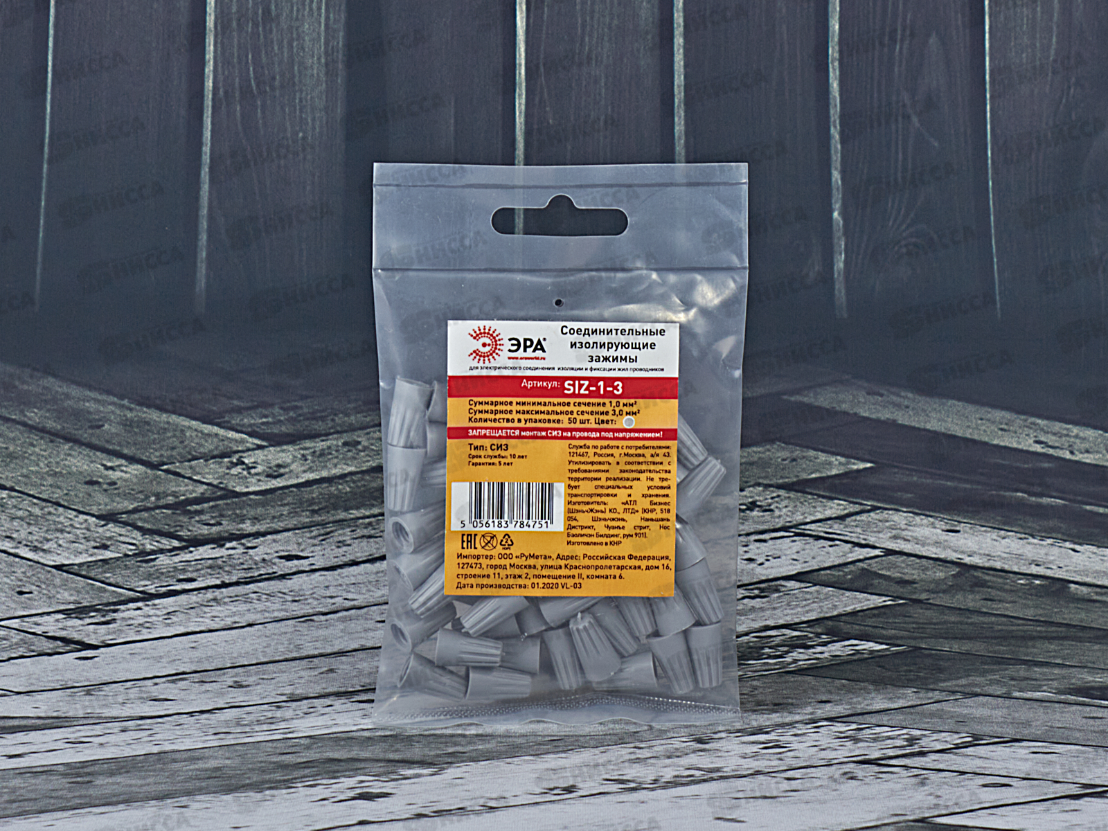Код:400965; Соединительный изолирующий зажим ЭРА СИЗ 1-3,0кв.мм, серый (50шт) *500