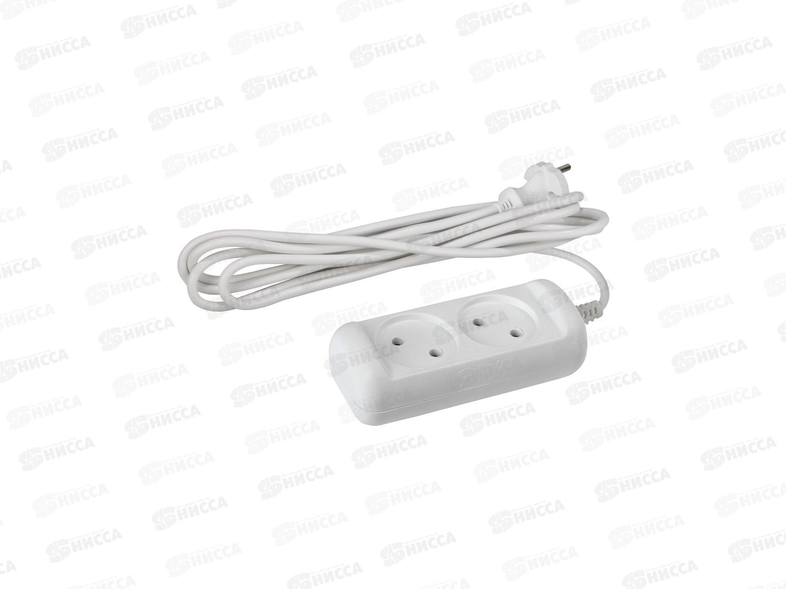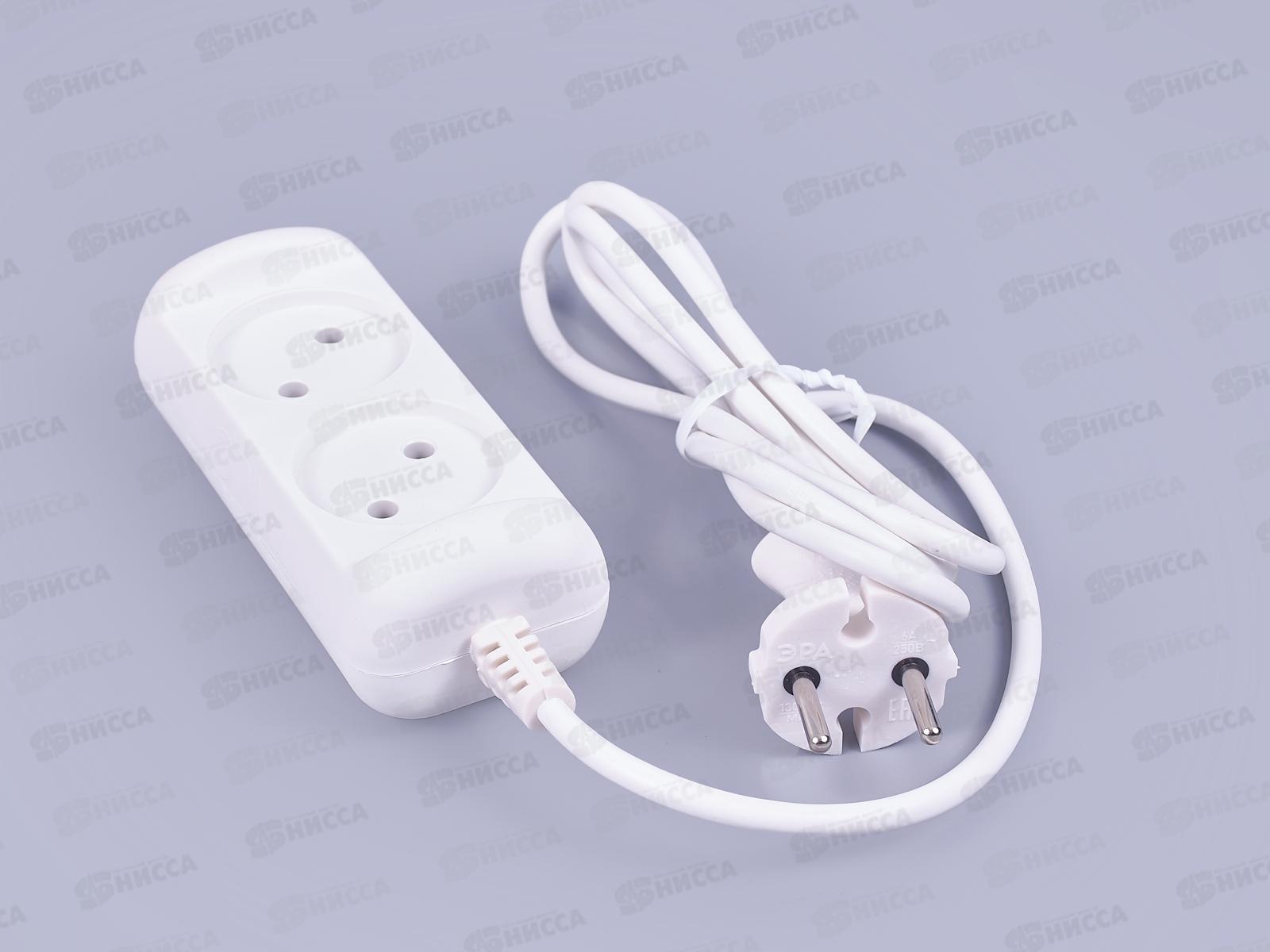 Код:432953; Удлинитель электрический ЭРА UX(6)-2-1,5m без заземления 2 розетки 1,5м ПВС 2x0,75кв.мм 6А белый *5/20