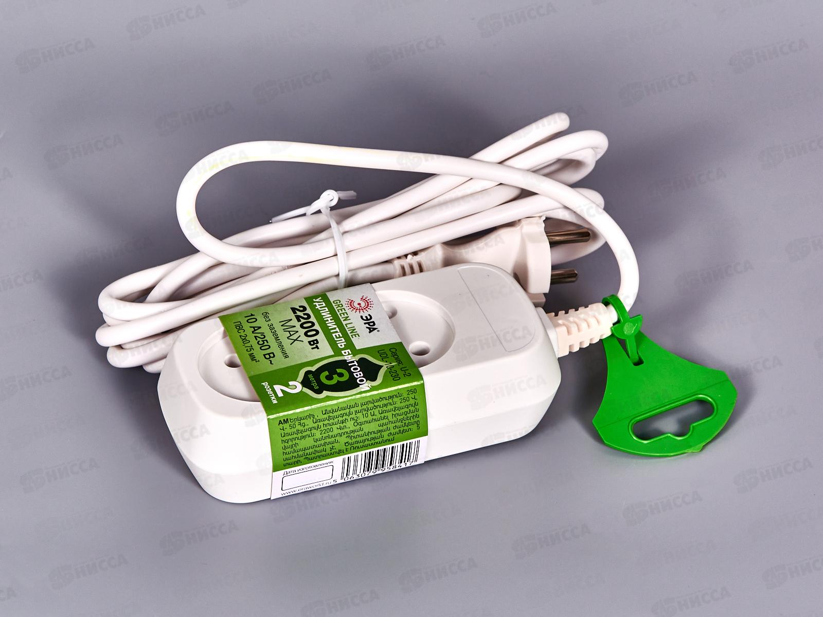 Код:262795; Удлинитель ЭРА UX(6)-2-3m без заземления, ПВС, 3м 2 гнезда 1300Вт *20