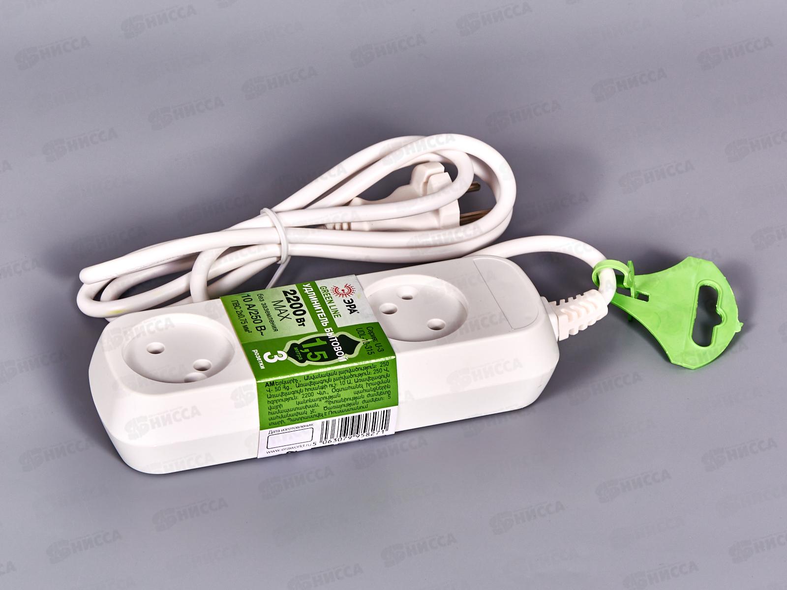 Код:553078; Удлинитель GREEN LINE 1.5м 2 гнезда, без заземления, ПВС 2*0.75, UDL-10-215 *20