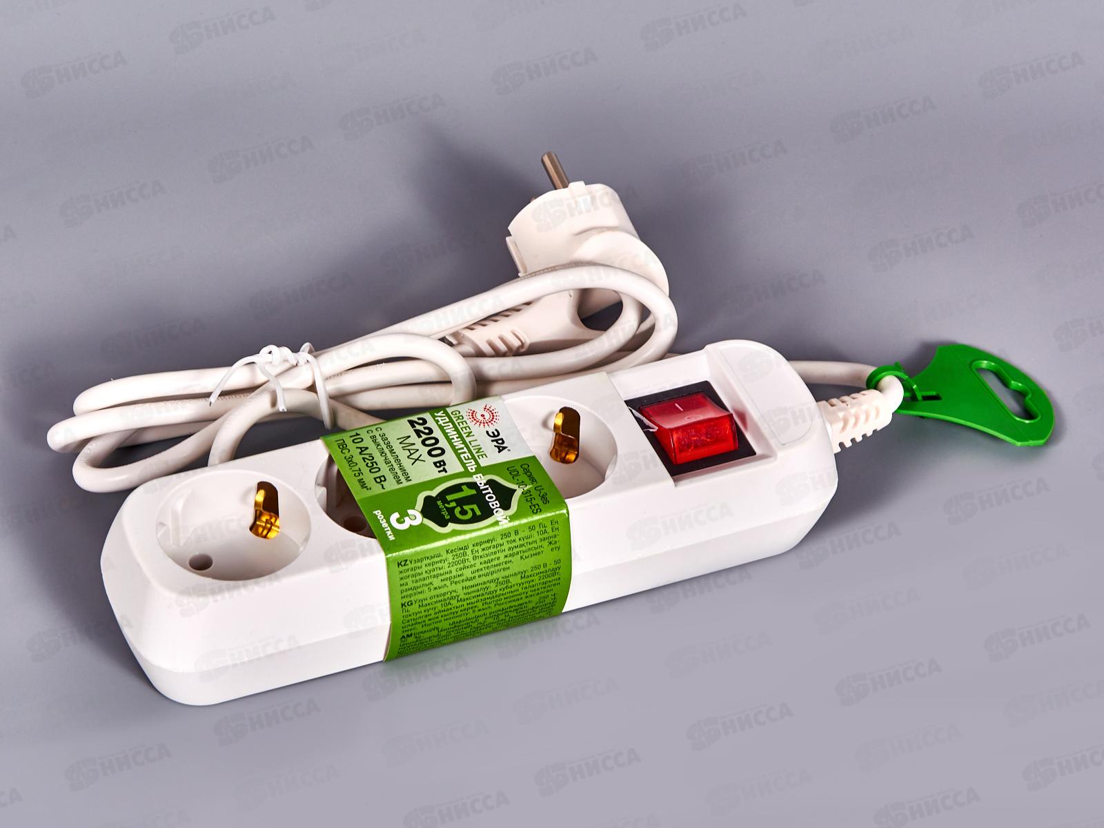 Удобный бытовой удлинитель ЭРА UX(6)-3-1,5m на 3 розетки, без заземления. Рассчитан на одновременное подключение к розетке до трёх маломощных электроп...