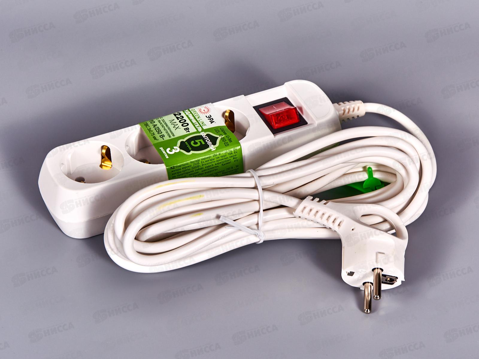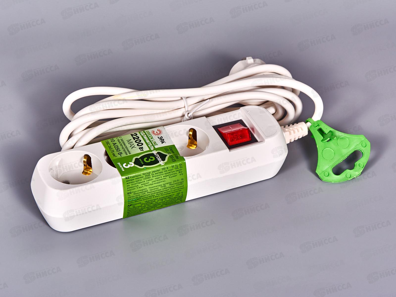 Удлинитель электрический Эра UX-3es-3m с заземлением, с выключателем, ПВС, 3x0,75мм2, 3 розетки, 3 м. Рассчитан на максимальную мощность 10А/2200 Вт. ...