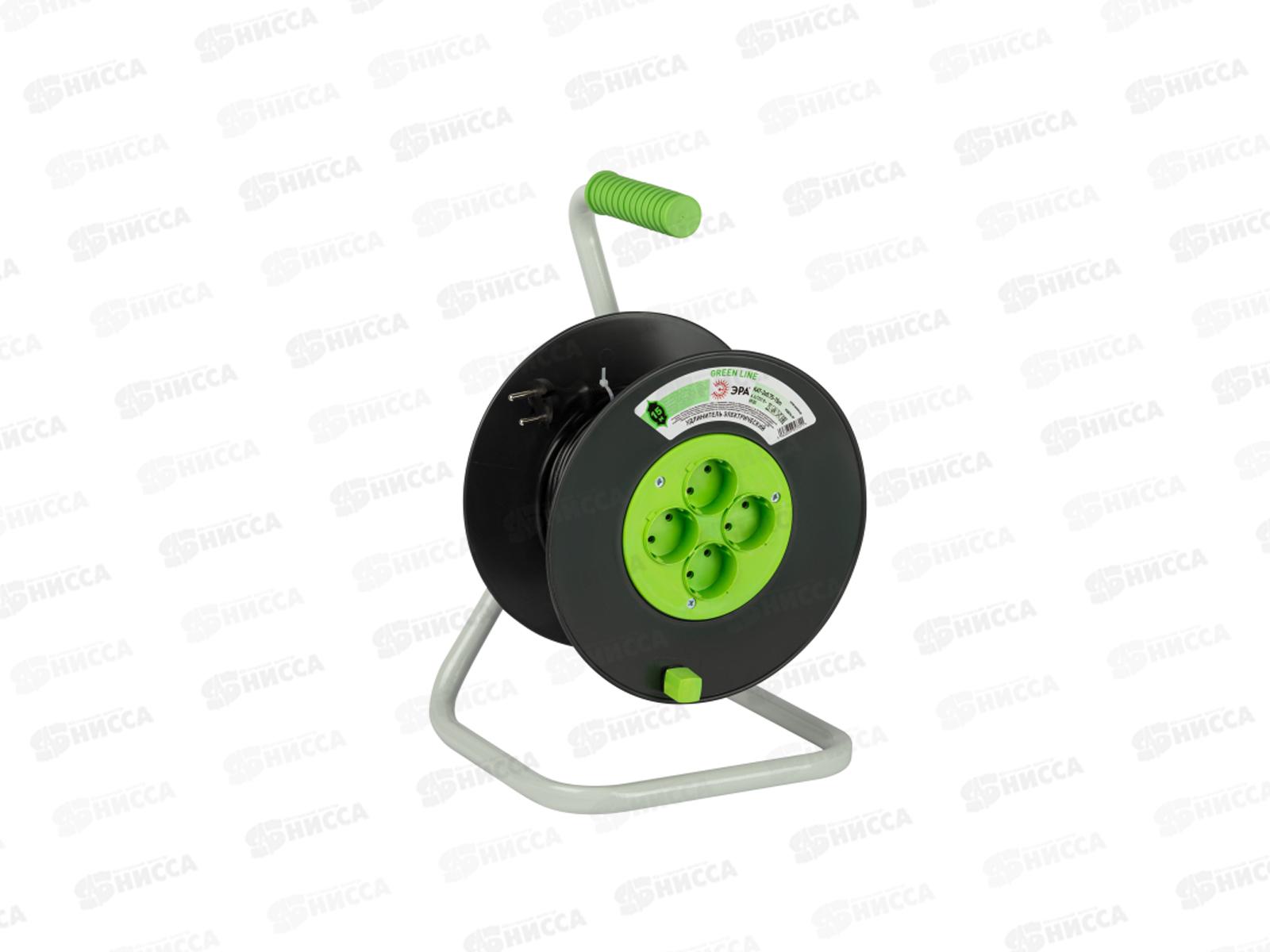 Код:553088; Удлинитель на катушке GREEN LINE 15м 4 гнезда, без заземления, ПВС 2*0.75, KAT-2x0.75-15m *2