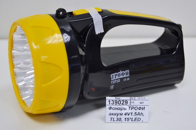 Код:139029; Фонарь ТРОФИ с аккумулятором 4V1.5Ah, TSP10, 15*LED, 2 режима, в картонной коробке *10/40