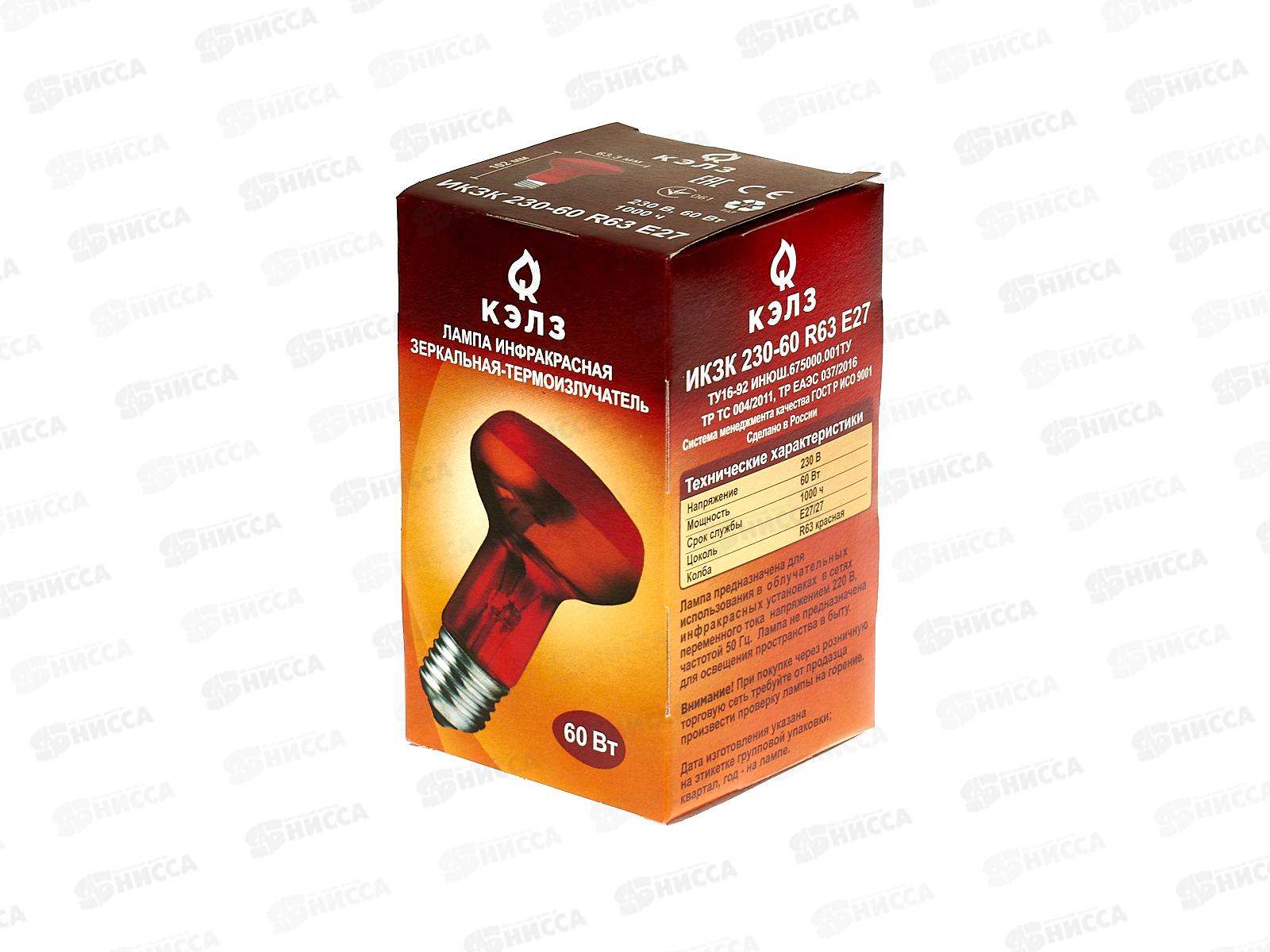 Код:472440; Электрическая лампочка ИКЗК 60Вт E27 R63 инфракрасная для обогрева животных *50
