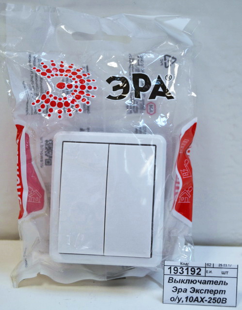 Код:193192; Выключатель Эра Эксперт открытой установки,10АХ-250В двойной., белый, 11-1204-01 *16