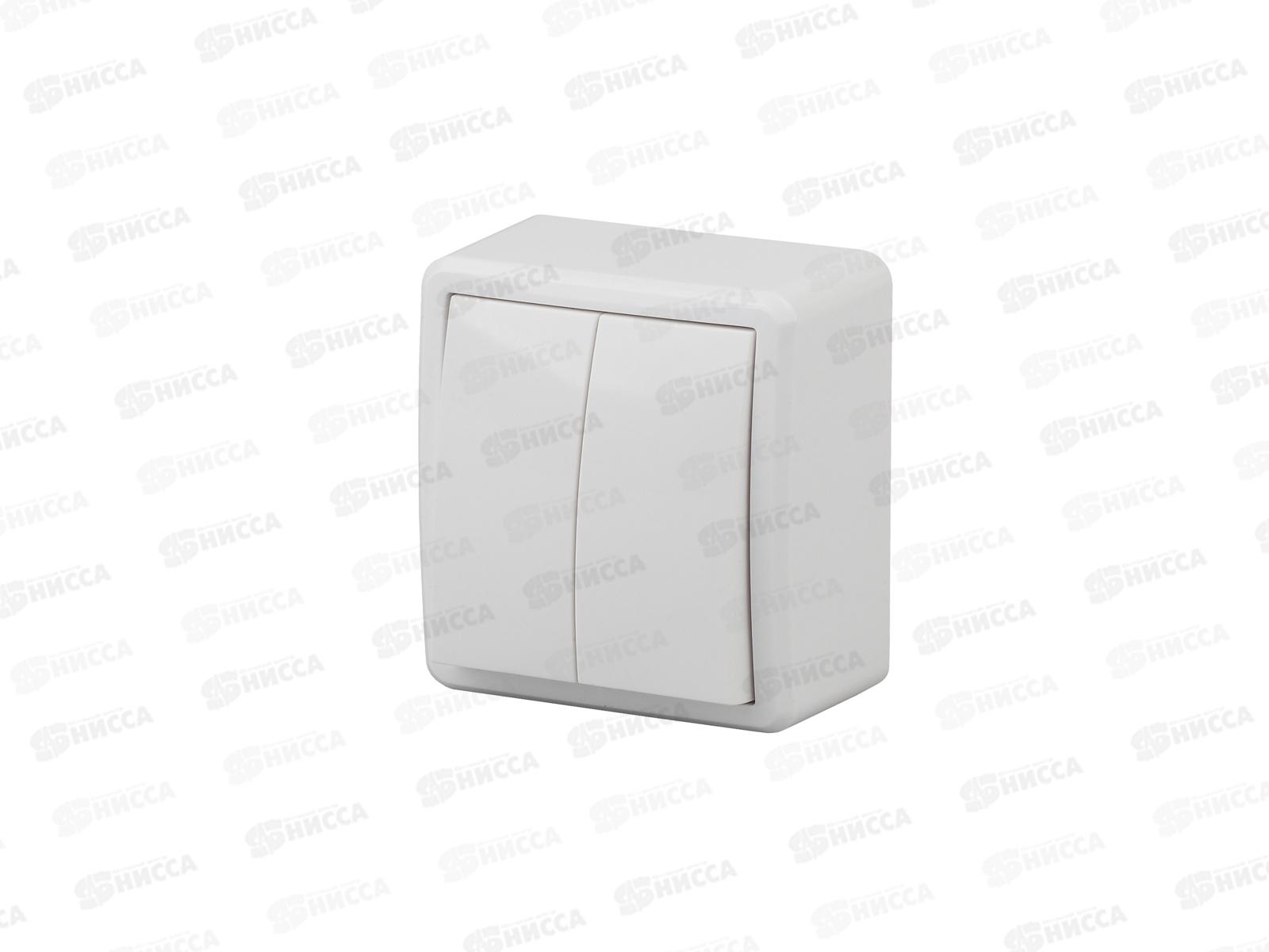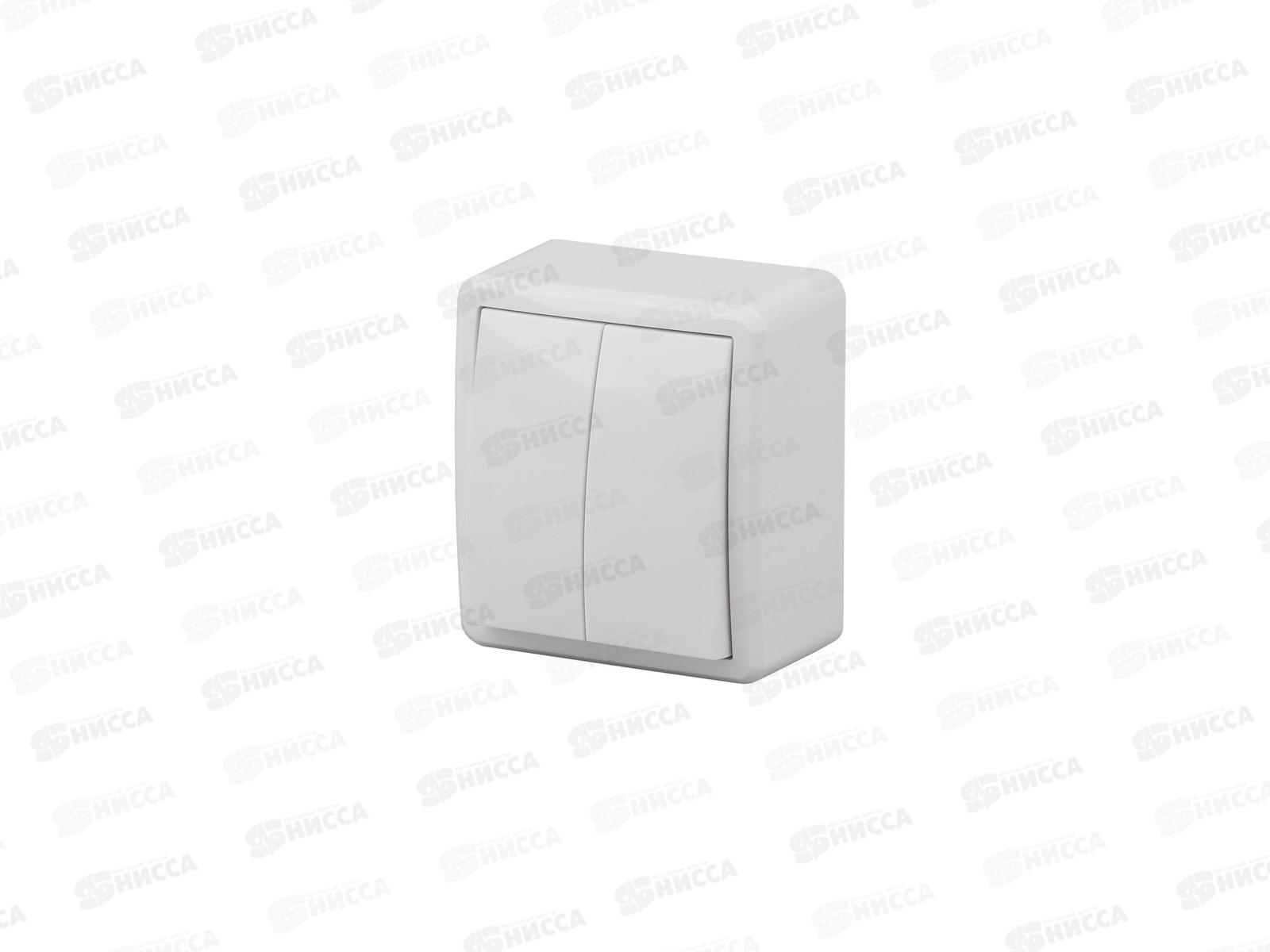 Код:193215; Выключатель Эра открытой установки, IP54,10АХ-250В двойной, белый, 11-1404-01 *1