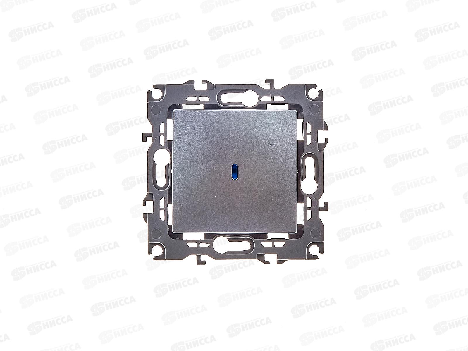Выключатель 1-клавишный с подсветкой серии Эра 12 скрыт.установки механизм цвет алюминий 12-1102-03. Номинальные характеристики 10А 250В. Сделан из по...