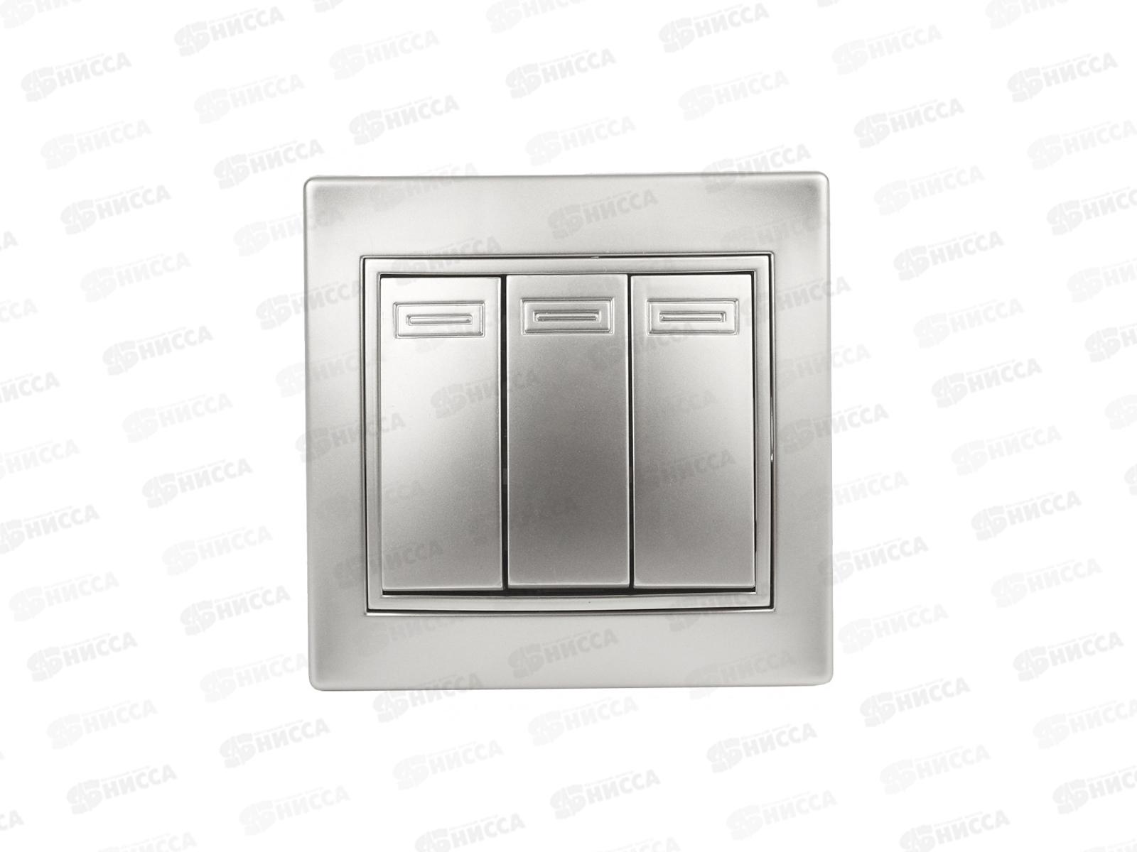 Код:450222; Выключатель INTRO Plano cкрытая установка тройной, 10А-250В, алюминий 1-106-03