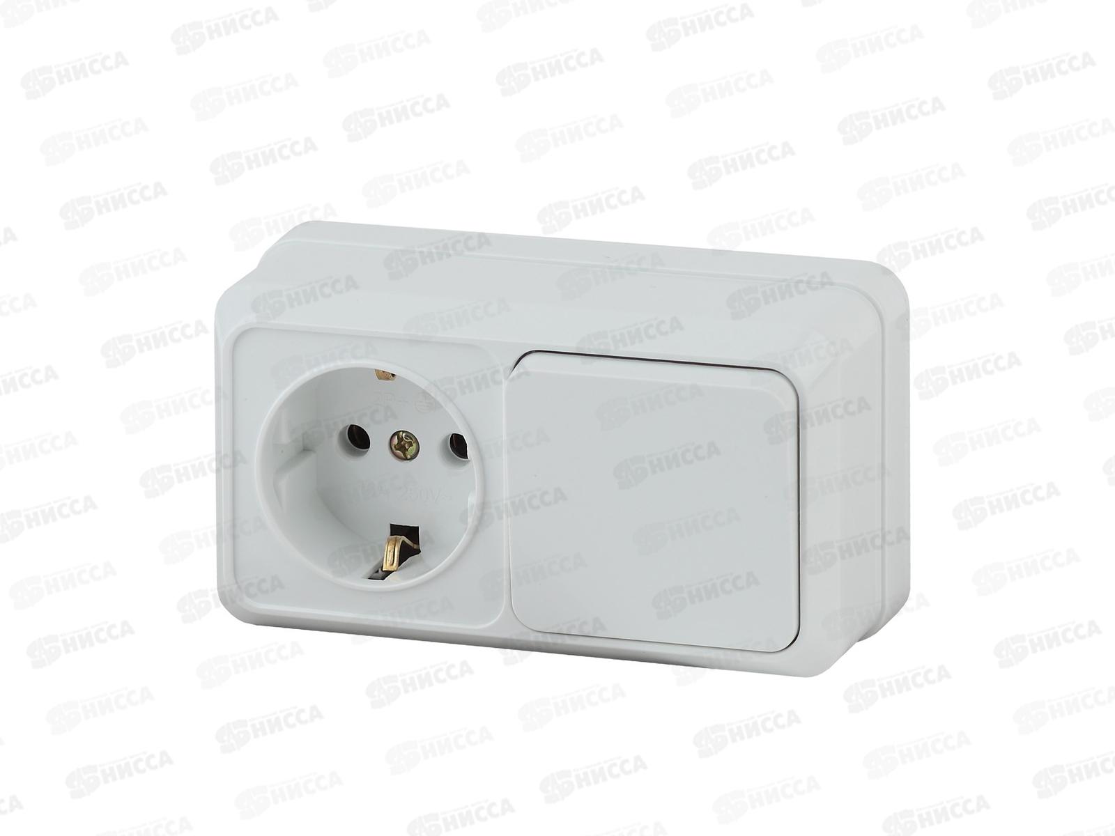 Код:450256; Блок (1выключатель+розетка) INTRO Quadro открытая установка, горизонтальный, 10(16)А-250В, IP20, белый, 2-701-01