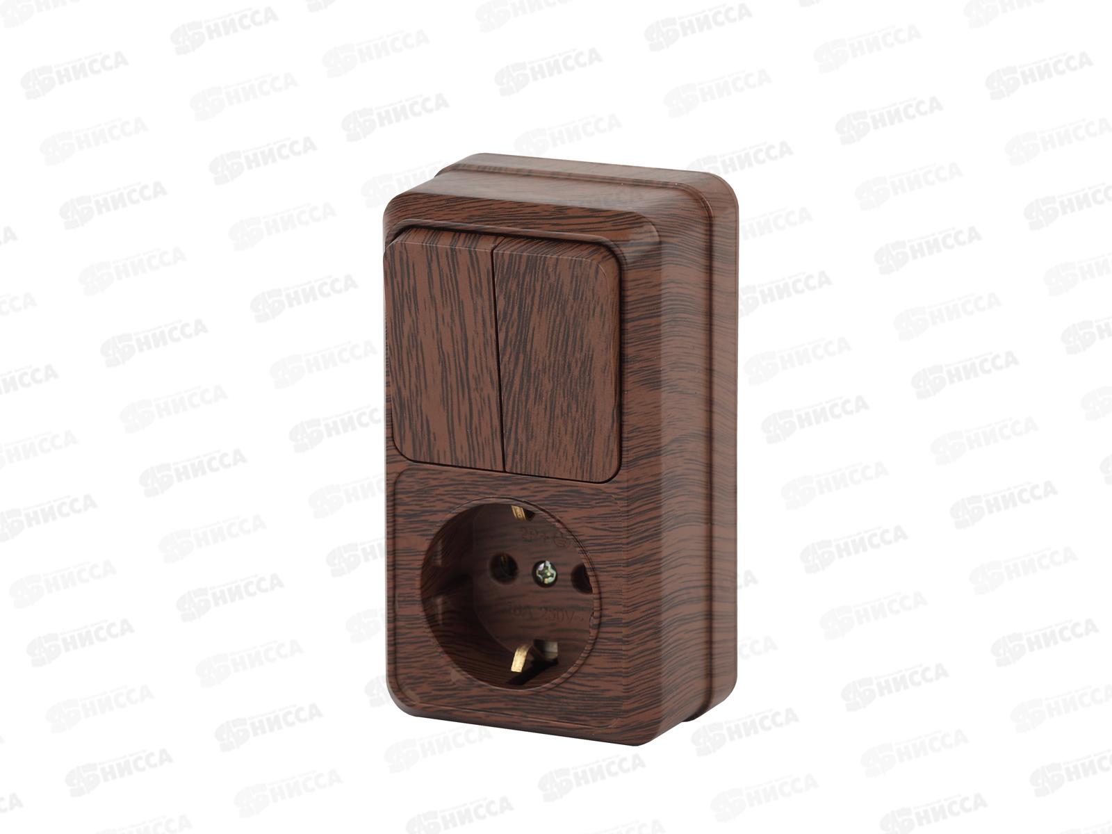 Код:450260; Блок (2выключателя+розетка) INTRO Quadro открытой установки, 10(16)А-250В, IP20, венге, 2-706-10