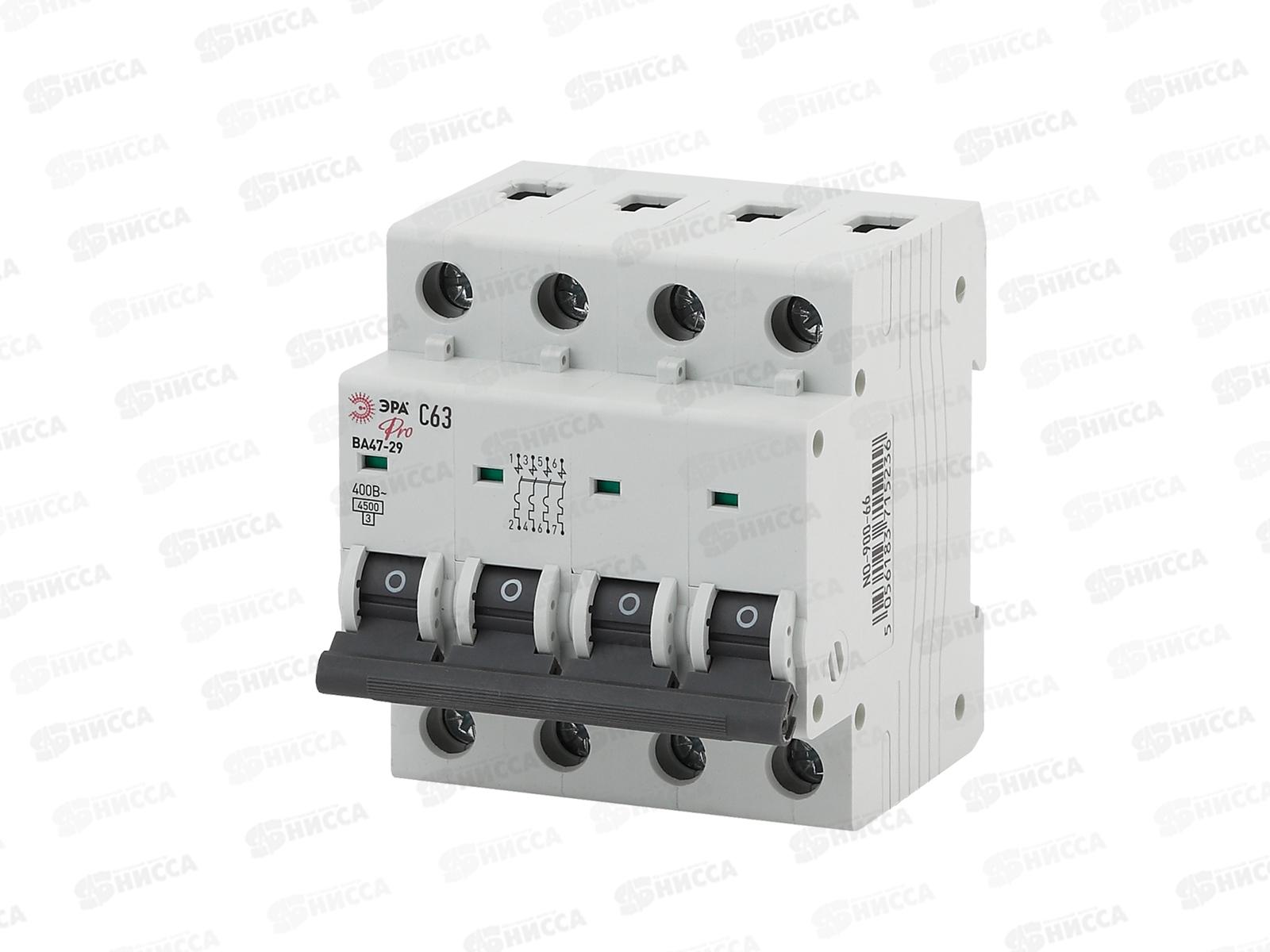 Код:472438; Автоматический выключатель ВА47-29 4P 63А 4,5кА C ЭРА Pro, 900-66 *3/45