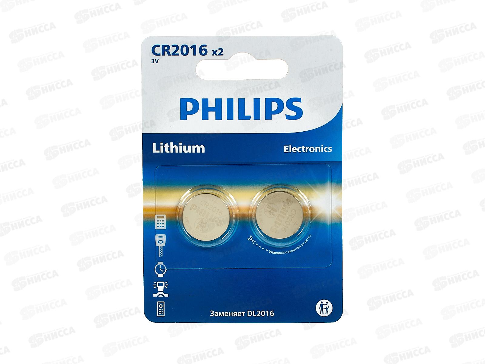 Код:550523; Батарейка ФИЛИПС CR2016 P2/51 литиевые *2/40/400