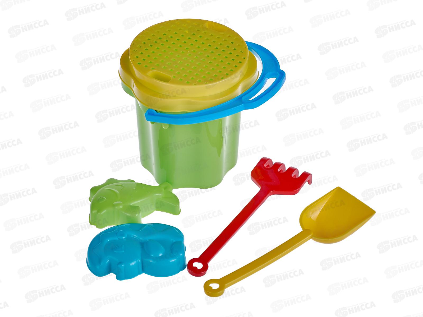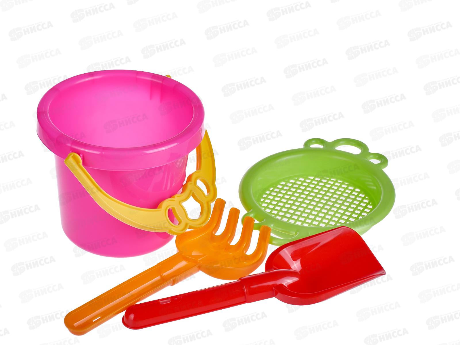 Код:474410; Набор песочный №106, 01806 (ведро 0,3л, сито, грабли, совок, машинка "Бублик") *55
