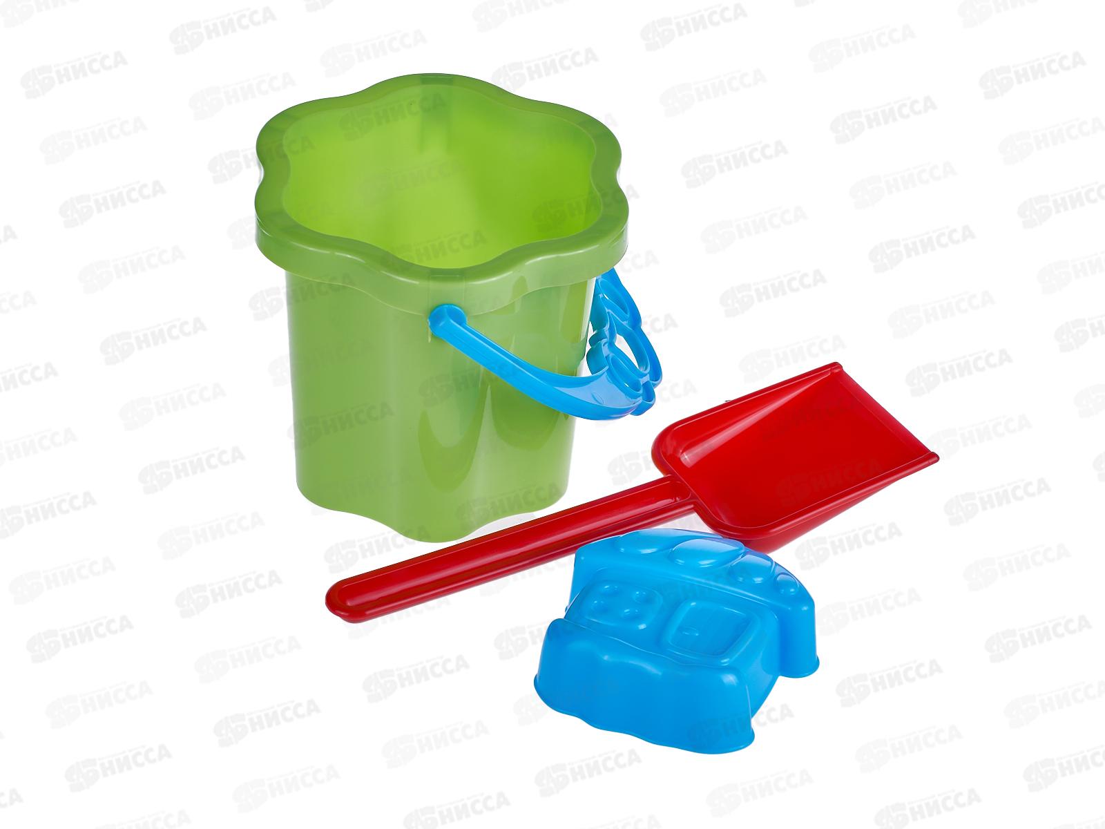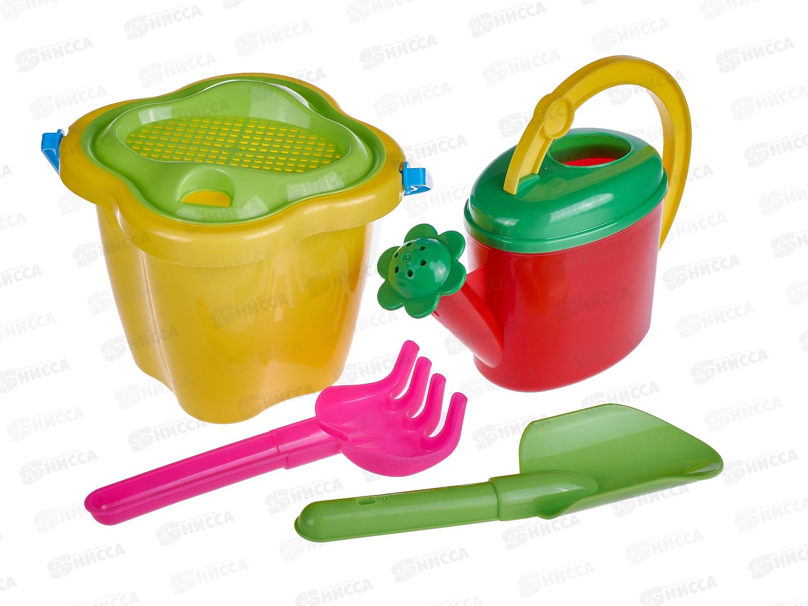 Код:474405; Набор песочный №101, 01801 (ведро-цветок 0,3л, сито, грабли, совок) *75