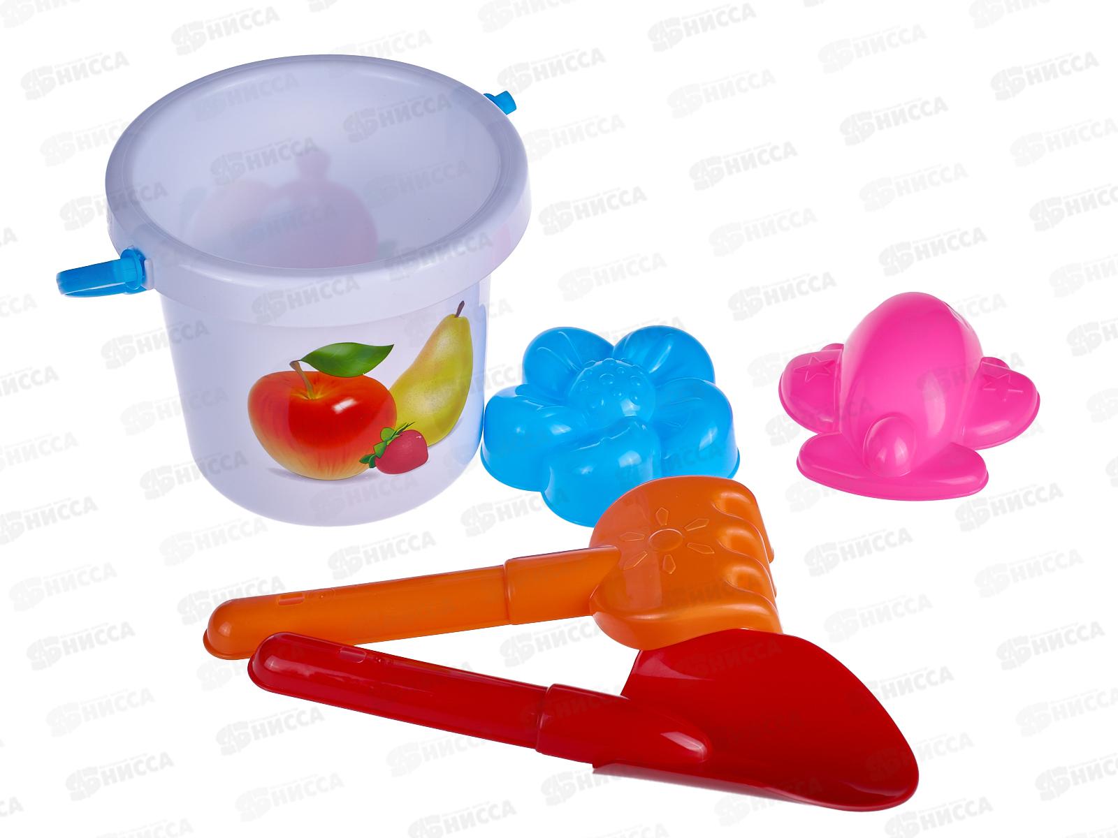 Код:474445; Набор песочный №153, 01853 (ведро 0,8л, сито, совок 19см, грабли 19см, 2 формочки) *26