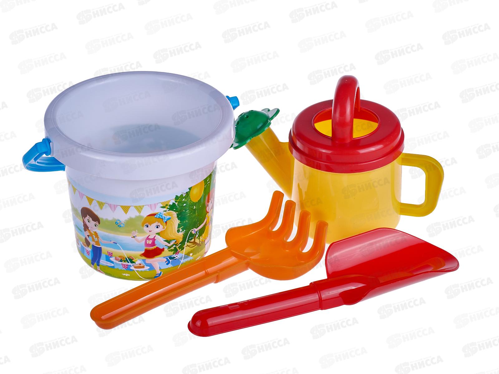 Код:474438; Набор песочный №125, 01825 (ведро 1л, сито, лейка 5,5л, лопатка 19см, грабли 19см) *16